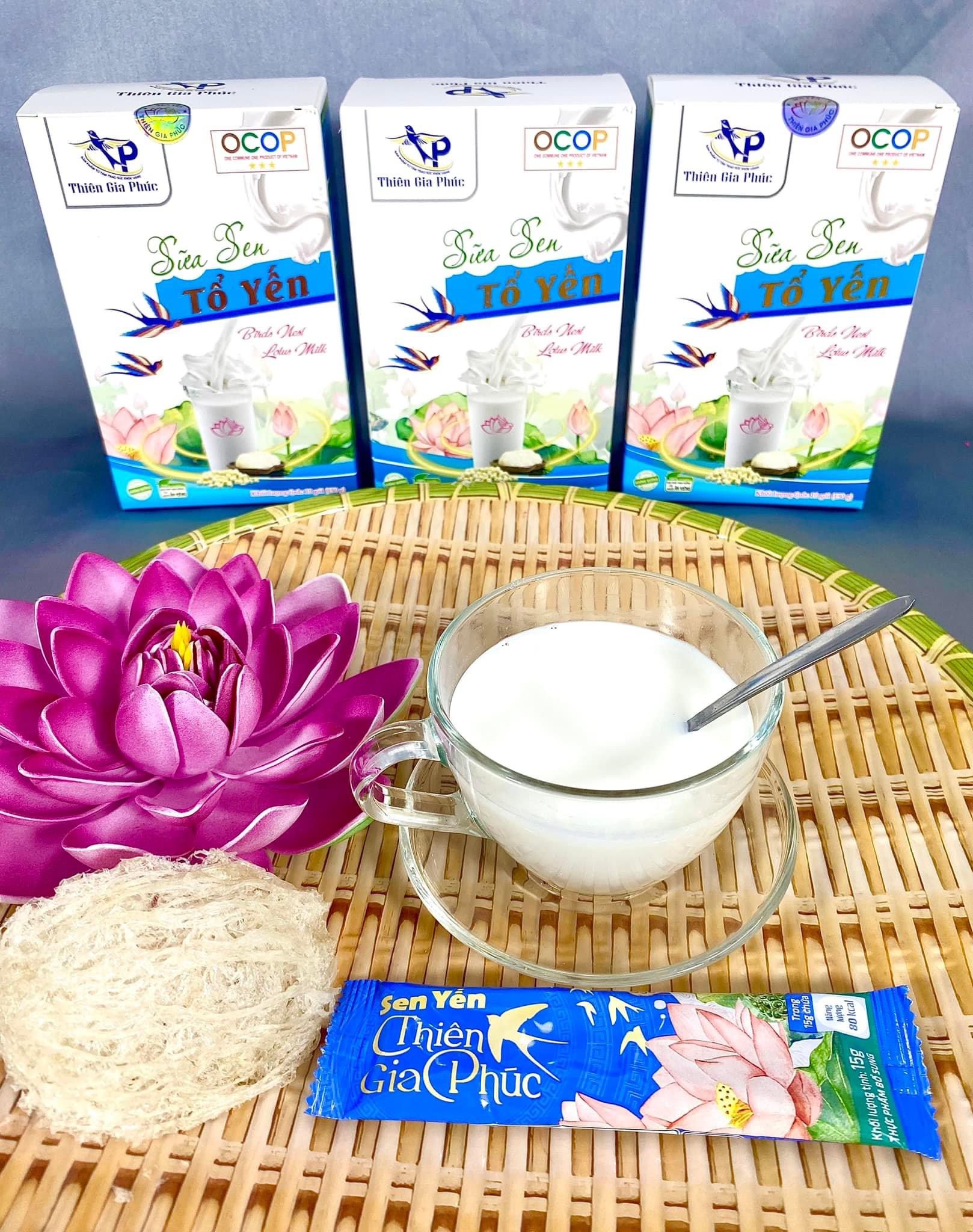 Sữa Sen yến Thiên Gia Phúc với thành phần chính từ hạt sen của Đồng Tháp Mười - vùng trồng sen nổi tiếng bậc nhất Việt Nam. Kết hợp với tổ yến nguyên chất tạo ra một sản phẩm độc đáo, thơm ngon, giàu dưỡng chất và tốt cho sức khoẻ.