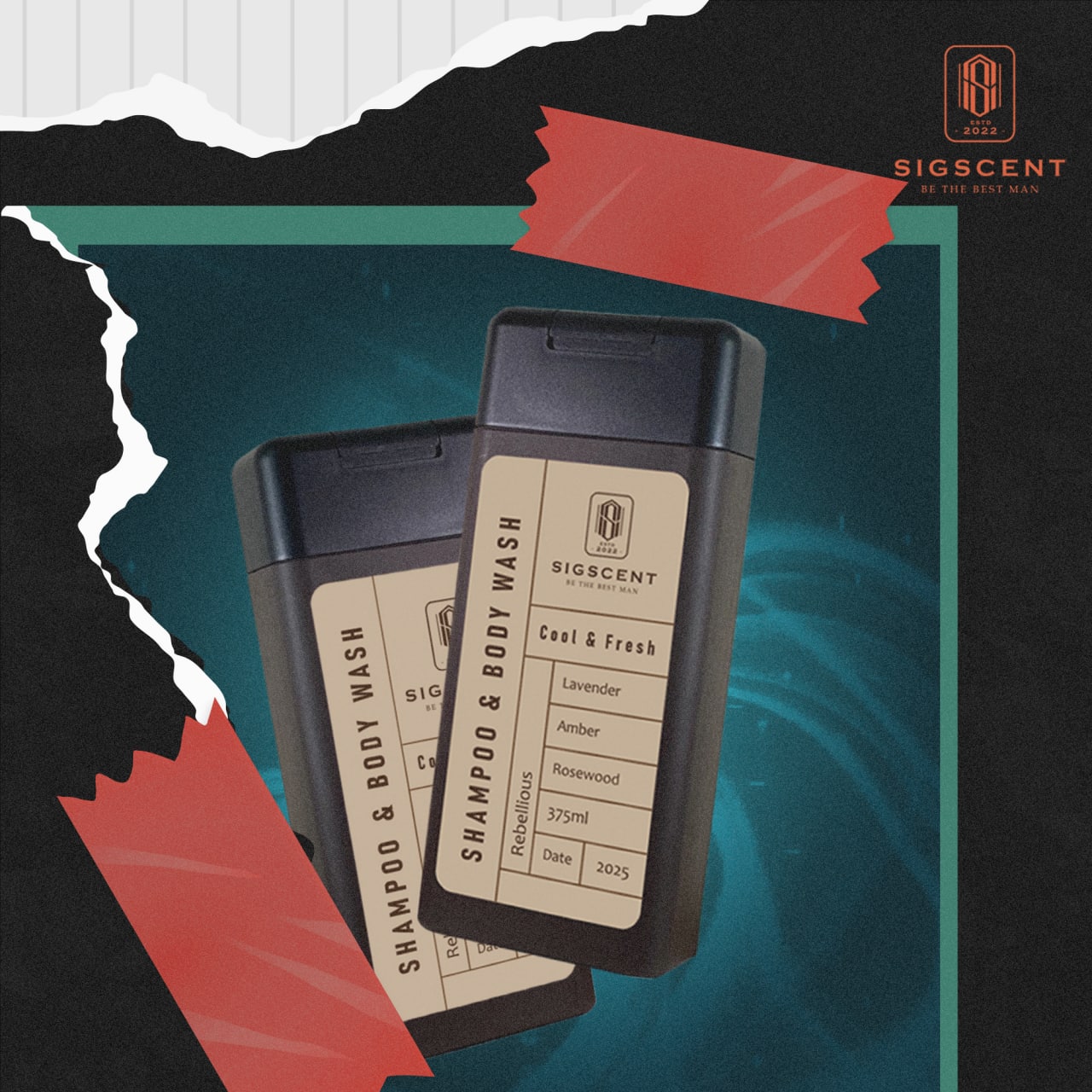 ✨Sữa tắm dầu gội cho nam hương nước hoa 375ml Rebellious thương hiệu SIGSCENT - COMBO 2