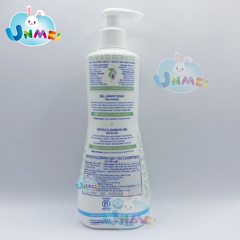 Sữa tắm Mustela - sữa tắm gội chung của Pháp có hương thơm dịu nhẹ mang đến cảm giác thư giãn và dễ chịu cho bé.