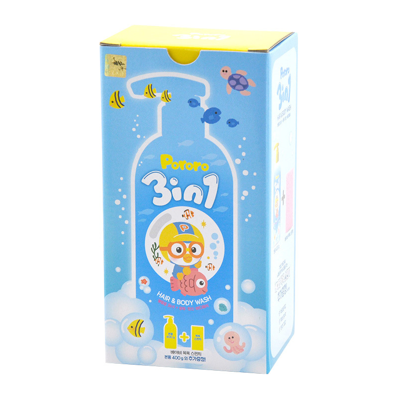 ✨Sữa tắm gội xả 3-in-1 trẻ em tặng kèm bông tắm Pororo Hàn Quốc 400ml