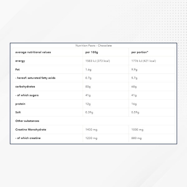 Sữa tăng cân Mummut Nutrition Weight Gainer 1400G Sữa tăng cân Mummut Nutrition Weight Gainer 1400G, sữa tăng cân mass. Được nhập khẩu từ Đức, là thực phẩm bổ sung dạng bột. Cung cấp một lượng lớn calo, carb, protein, vitamin cùng nhiều chất dinh dưỡng khác. Hỗ trợ tăng cân một cách an toàn, nhanh chóng và hiệu quả. Weight Gainer Mammut bổ sung carbohydrate – protein concentrate chất lượng cao với tỷ lệ 80:10. Mammut Whey Protein là loại bột whey protein chất lượng cao. Được điều chỉnh phù hợp với nhu cầu cơ bản của vận động viên. Một lần lắc chứa 27g protein. Protein là một khối xây dựng quan trọng trong cơ thể. Tổng lượng này chiếm khoảng 15 – 17% khối lượng cơ thể ở người trưởng thành. Nó phục vụ như một vật liệu xây dựng cho sự phát triển và duy trì  và duy trì xương bình thường. Carbohydrate bao gồm dextrose và maltodextrin cùng với protein 4 thành phần. Từ đậu nành, trứng gà, whey và protein từ sữa được kết hợp một cách hiệu quả. Ngoài ra weight gainer cũng được tối ưu với creatine giúp cải thiện cơ bắp. Và tăng hiệu suất tập luyện (mỗi khẩu phần pha chung với sữa chứa 1000g Creatine monohydrate) tỷ lệ BCAA cao tự nhiên. Ngay sau khi tiêu thụ Mammut Whey Protein, hàm lượng axit amin trong máu tăng lên nên đặc biệt phù hợp trước và sau khi tập luyện. Bởi vì hàm lượng axit amin cao trong máu dẫn đến việc cung cấp cho cơ bắp tốt hơn trước hoặc sau khi tập luyện. ✓ Phức hợp carbohydrate 3 thành phần và phức hợp protein 4 thành phần một sự pha trộn hiệu quả để giúp bạn tăng lượng calo. ✓ Chứa creatine monohydrat góp phần tăng hiệu suất thể chất trong quá trình luyện tập cường độ cao. ✓ Hàm lượng carbohydrate cao 80% carbohydrate. Chứa carbohydrate tiêu hóa nhanh dextrose và maltodextrin. ✓ Lý tưởng cho các vận động viên sức bền và cạnh tranh.