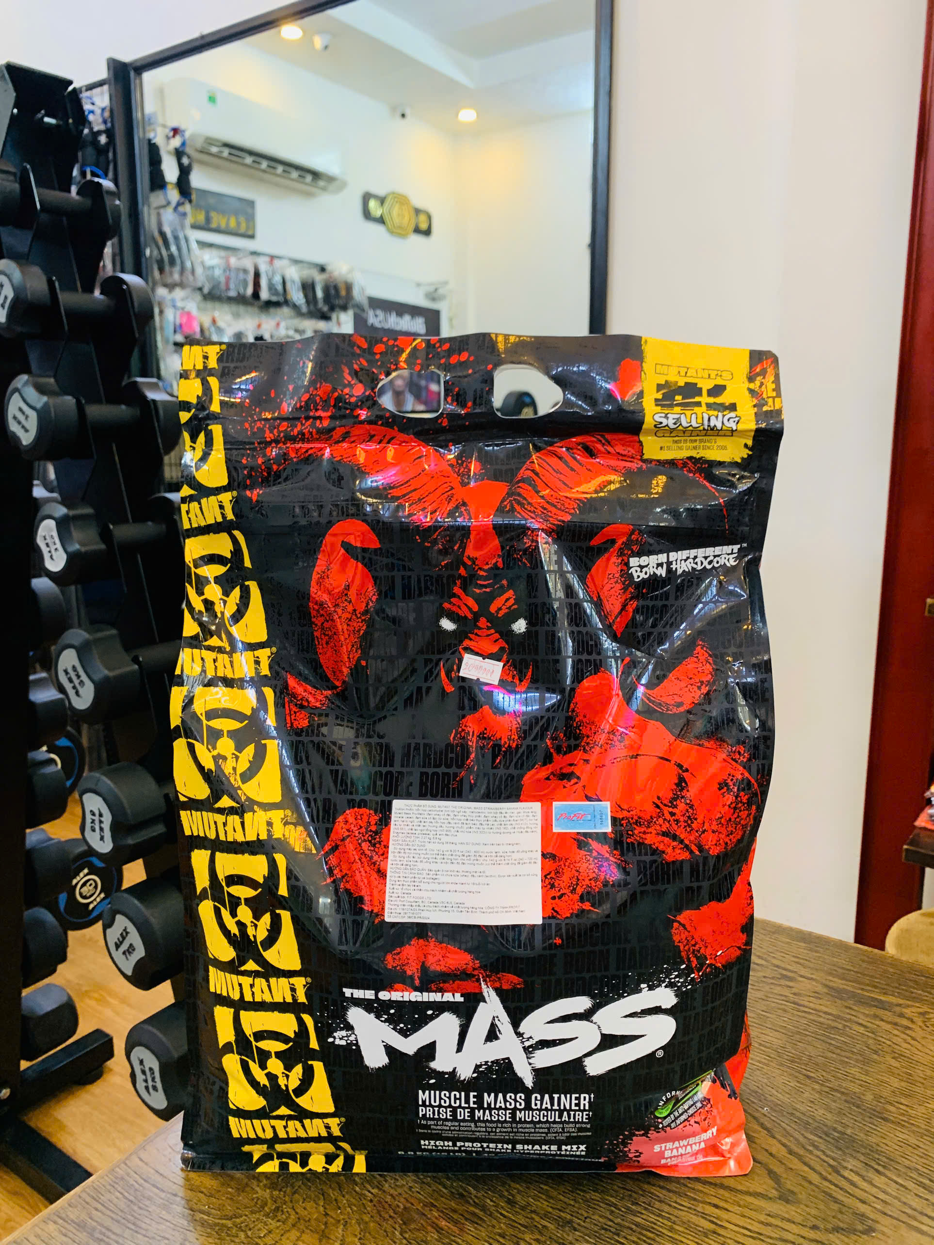 MUTANT MASS được biết đến như một trong những sản phẩm bổ sung có 52g protein cao cấp dành cho những người gầy cần bổ sung thêm năng lượng để tăng cân, tăng cơ nhanh. Đó là cách tuyệt vời để thêm vào lượng peptic xương và axít amino dạng tự do, giúp cơ thể dễ tiêu hóa với hợp chất hyđrat cac bon (polyme glucoza), và đường fructo kết tinh cho chương trình dinh dưỡng căn bản của bạn. MUTANT MASS cung cấp thành phần dinh dưỡng sau: – 1100 kcal. – 56g protein. – 40% hàm lượng canxi. – 36g BCAA, EAAs, Glutamine tự nhiên. – Nhiều hương vị khác nhau Và nhiều axit amin giúp tăng cơ nhanh, tăng cơ nạc, hạn chế tăng mỡ và tích nước Công dụng của MUTANT MASS Cung cấp hàm lượng hydrate carbon để giúp tạo năng lượng cho cơ thể. MUTANT MASS cung cấp năng lượng nạp vào nhiều và hấp thu vào cơ thể nhanh thì sẽ giúp bạn tăng được số kg mong muốn. MUTANT MASS luôn có những cải tiến mới để đem đến cho bạn sản phẩm bổ sung tăng cân nhanh và hiệu quả. Đa dạng với nhiều hương vị khác nhau sẽ giúp bạn không thể chán và ngán khi dùng sản phẩm. HƯỚNG DẪN SỬ DỤNG – Dùng Shaker cho 1 muỗng MUTANT MASS vào 150ml nước lạnh, lắc mạnh và đều tay cho đến khi bột tan hoàn toàn uống liền hoặc để trong tủ lạnh từ 5-10 phút rồi uống. – Cho 1 muỗng bột MUTANT MASS, những loại trái cây yêu thích, 100ml nước, vài cục đá, tất cả cho vào máy xay tan hoàn toàn, xay khoảng 3-5 phút, sau đó dùng ngay hoặc để trong tủ lạnh. – Để đạt mức độ tăng cân nhanh, bạn pha bột MASS với sữa tươi có 1% chất béo. – Mỗi ngày dùng ít nhất 4 lần và tăng số lượng lần dùng, tăng số lượng muỗng theo nhu cầu. – Khi bắt đầu sử dụng, để tạo cho cơ thể bạn hấp thu thì bạn dùng từ ít đến nhiều và chia nhỏ số lần dùng để cơ thể hấp thu và làm quen.