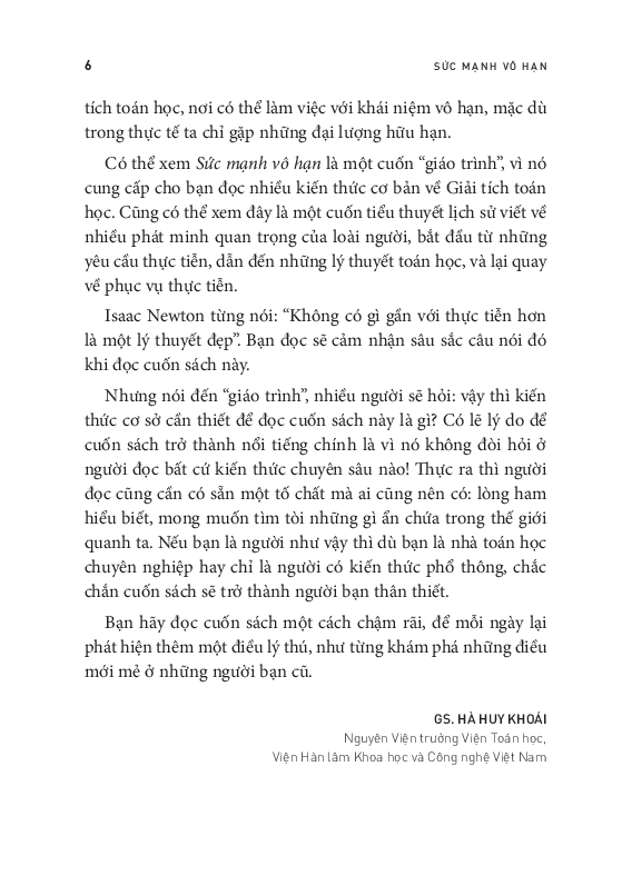 Như Strogatz đã chứng minh, giải tích thực sự là ngôn ngữ của vũ trụ. Bằng cách tiết lộ các nguyên tắc của ngôn ngữ đó, Sức mạnh vô hạn khiến chúng ta kinh ngạc về thế giới một lần nữa.