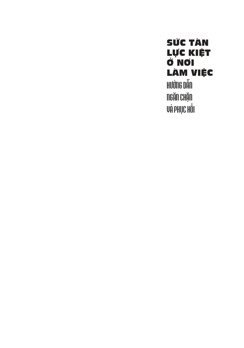 Cuốn sách "Sức tàn lực kiệt ở nơi làm việc" được thiết kế để phù hợp với bất kì ai đang phải vật lộn với tình trạng kiệt sức, cũng như những người làm việc cufng hoặc quan tâm đến các nhạn nhân của tình trạng này. Chúng tôi đặc biệt quan tâm đến những độc giả làm quản lí, hay đúng hơn là đến khả năng của các bạn để giúp người khác phục hồi sau tình trạng kiệt sức, cũng như ngăn chặn tình trạng này ở các nhân viên vẫn chưa bị ảnh hưởng.
