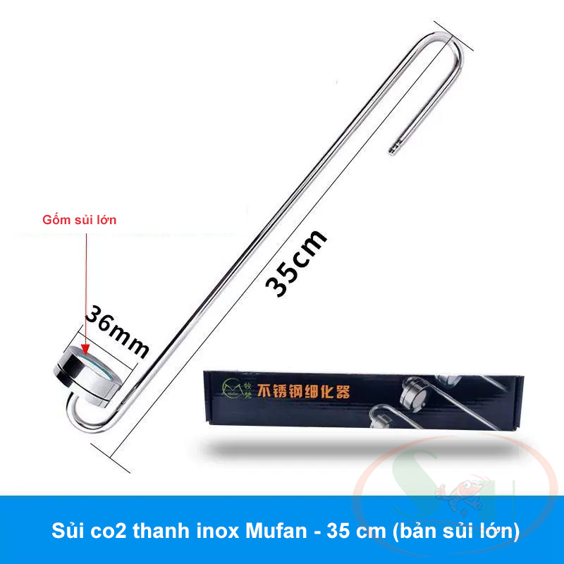 - Đường kính gốm sủi: 20 mm (thanh 20cm), 31 mm (thanh 25 - 30 - 35 - 40cm). HƯỚNG DẪN SỬ DỤNG SỦI CO2 THANH INOX MUFAN: