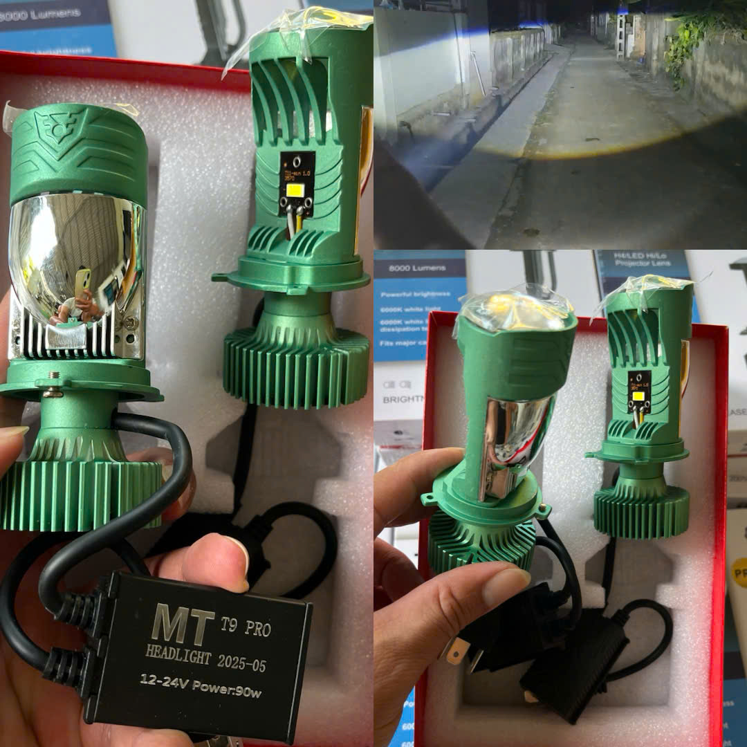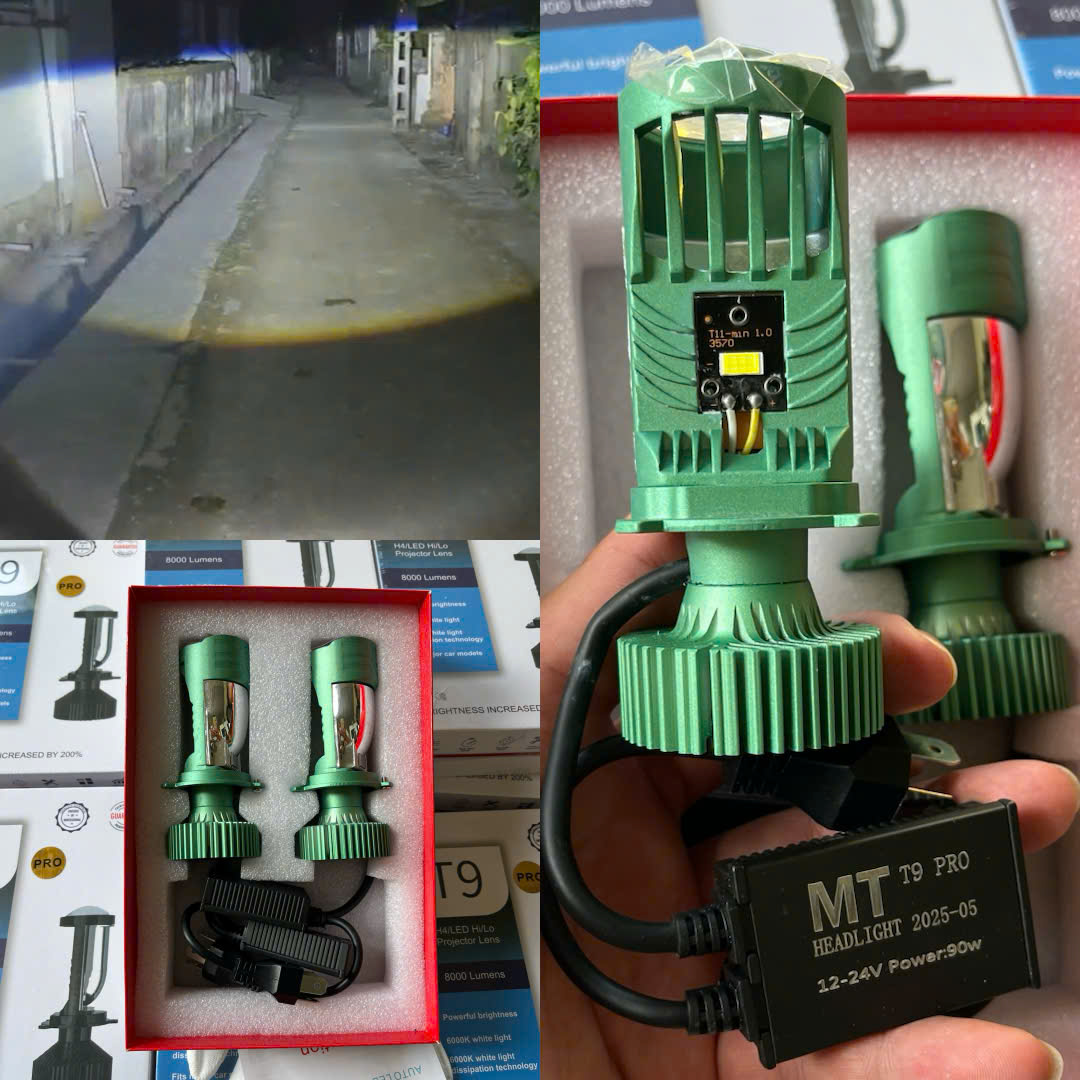 Vỏ đèn bền bỉ, tản nhiệt tốt, sử dụng ổn định lâu dài. Ứng dụng: Phù hợp lắp cho xe máy, ô tô con, xe tải nhỏ, xe bán tải… khi cần ánh sáng mạnh để đi đường đèo, đường tối hoặc các khu vực thiếu sáng. T9 Pro 90W – Đèn Pha Bi Cầu LED Siêu Sáng – Chống Chói – Cắt Ánh Sáng Chuẩn – Lắp Đặt Dễ Dàng