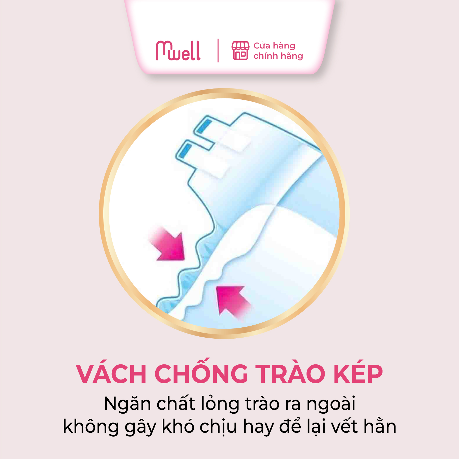 - Thiết kế lõi siêu thấm hút giúp chống tràn hiệu quả và thấm hút hết chất lỏng giúp người lớn luôn cảm thấy thoải mái và khô thoáng.