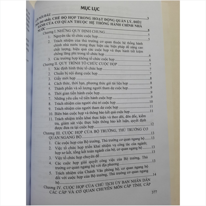 - Toàn bộ sách bìa mềm khổ lớn 19 x 27 cm phân phối bởi Nhà sách Nam Việt đều được bọc sách Plastic MIỄN PHÍ và xuất hóa đơn điện tử đầy đủ, nhanh chóng. …//… Nội dung sách gồm 9 phần sau: Phần thứ nhất. CHẾ ĐỘ HỌP TRONG HOẠT ĐỘNG QUẢN LÝ, ĐIỀU HÀNH CỦA CƠ QUAN THUỘC HỆ THỐNG HÀNH CHÍNH NHÀ NƯỚC Phần thứ hai. NGHI LỄ ĐỐI NGOẠI, LỄ TÂN ĐỐI NGOẠI ĐẢNG Phần thứ ba. TỔ CHỨC VÀ QUẢN LÝ HỘI NGHỊ, HỘI THẢO QUỐC TẾ TẠI VIỆT NAM Phần thứ tư. QUY CHẾ LÀM VIỆC CỦA CHÍNH PHỦ Phần thứ năm. QUY CHẾ TỔ CHỨC CÁC HỘI NGHỊ, CUỘC HỌP TRONG HOẠT ĐỘNG QUẢN LÝ, ĐIỀU HÀNH CỦA CÁC NGÀNH Phần thứ sáu. HƯỚNG DẪN VỀ NGHI LỄ ĐỐI NGOẠI VÀ ĐÓN, TIẾP KHÁCH NƯỚC NGOÀI THĂM ĐỊA PHƯƠNG Phần thứ bảy. QUY ĐỊNH CHẾ ĐỘ TIẾP KHÁCH NƯỚC NGOÀI VÀO LÀM VIỆC TẠI VIỆT NAM, CHẾ ĐỘ CHI TỔ CHỨC HỘI NGHỊ, HỘI THẢO QUỐC TẾ TẠI VIỆT NAM VÀ CHẾ ĐỘ TIẾP KHÁCH TRONG NƯỚC Phần thứ tám. QUY ĐỊNH VỀ TỔ CHỨC NGÀY KỶ NIỆM; NGHI THỨC TRAO TẶNG, ĐÓN NHẬN HÌNH THỨC KHEN THƯỞNG, DANH HIỆU THI ĐUA; NGHI LỄ ĐỐI NGOẠI VÀ ĐÓN, TIẾP KHÁCH NƯỚC NGOÀI Phần thứ chín. KỸ NĂNG VÀ PHƯƠNG PHÁP TỔ CHỨC CÁC SỰ KIỆN QUAN TRỌNG ...//... Cảm ơn các bạn đã ghé thăm shop Nhà sách Nam Việt ! Sách Tài liệu hướng dẫn Tổ Chức Các Cuộc Họp, Quản Lý Hội Nghị, Hội Thảo Và Chế Độ Họp Trong Hoạt Động Quản Lý, Điều Hành Của Cơ Quan Hành Chính, Doanh Nghiệp Sách Tài liệu hướng dẫn Tổ Chức Các Cuộc Họp, Quản Lý Hội Nghị, Hội Thảo Và Chế Độ Họp Trong Hoạt Động Quản Lý, Điều Hành Của Cơ Quan Hành Chính, Doanh Nghiệp