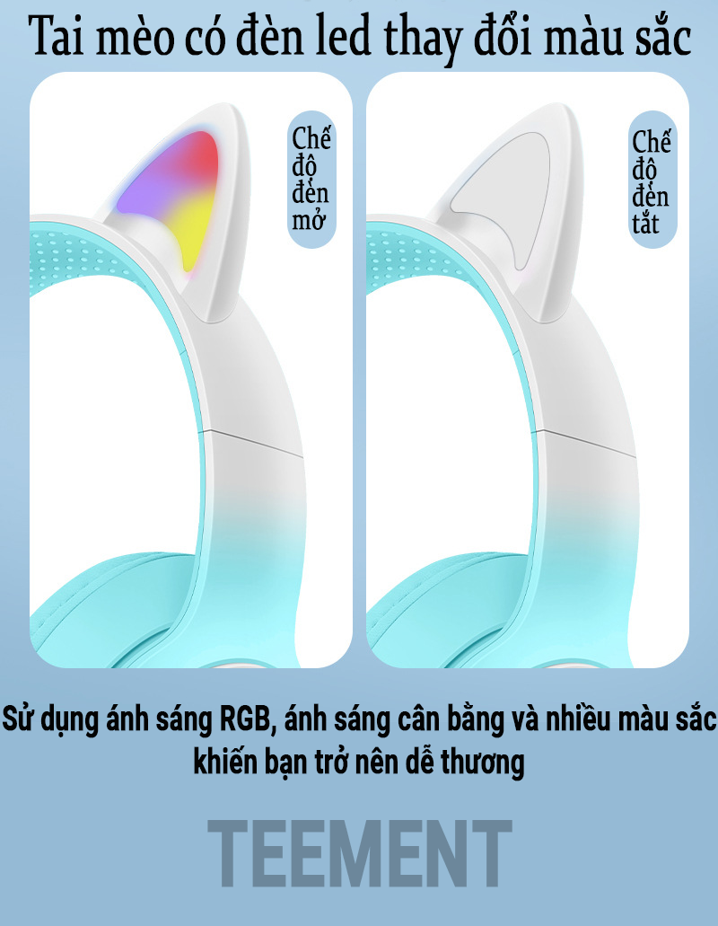 Tai Nghe Bluetooth Tai Mèo Phát Sáng Teement, Tai Nghe Không Dây, Tai Nghe Chụp Tai Bluetooth 5.3, Đèn Led Và Âm Bass Mạnh Mẽ -hàng Chính Hãng   Mô tả sản phẩm Tai nghe