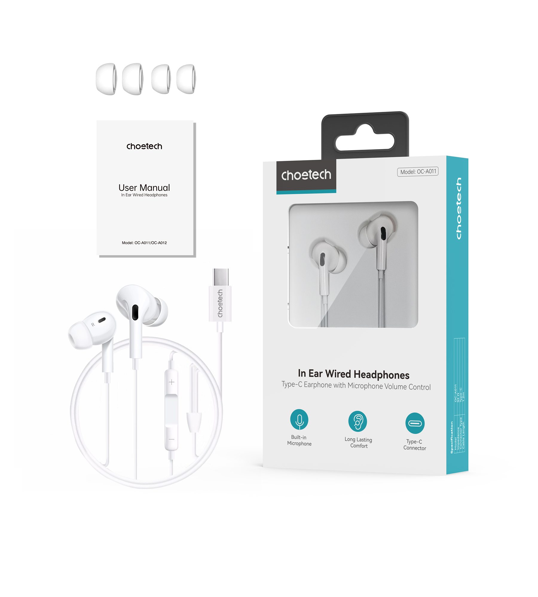 Giới thiệu Tai nghe Choetech OC-A011 dây nhét tai Type C có đệm cao su (Hàng chính hãng)