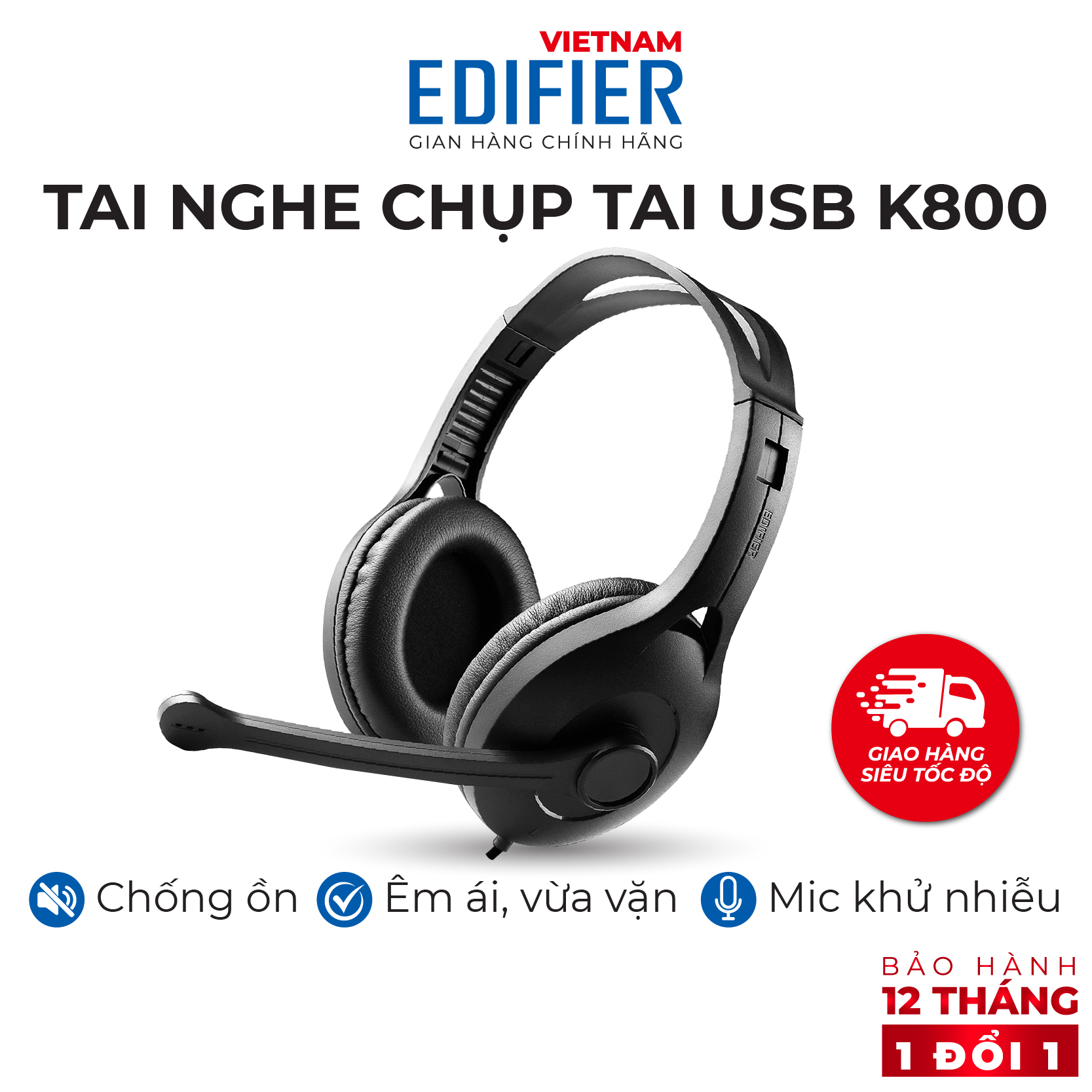 ✨Tai nghe chụp tai có mic EDIFIER USB K800 Chống ồn Chân cắm USB- Hàng chính hãng