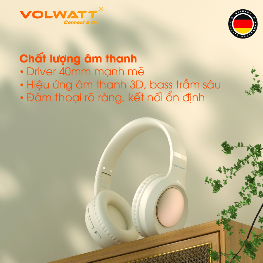 ✨Tai nghe chụp tai không dây Volwatt Flow hàng chính hãng | Bluetooth 5.4 + EDR, AUX 3.5mm, Pin 200mAh 18h, Mic ENC, BH 12 tháng