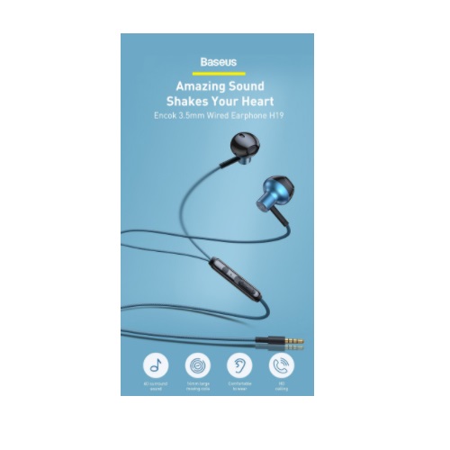 Tai nghe AUX 3.5mm Baseus Encok H19 Wired Earphone ( surround, Deep Bass,Microphone for HD Calling)