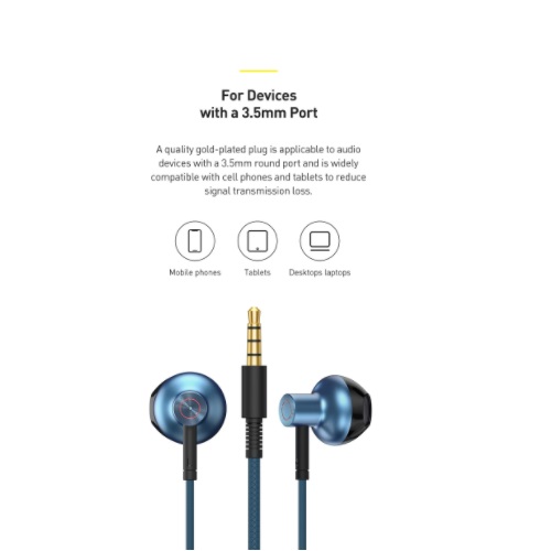 ✨Tai Nghe Có Dây Baseus H19 Âm Thanh Trầm Nổi 6D 3.5 Mm, Tích Hợp Micro - Hàng nhập khẩu