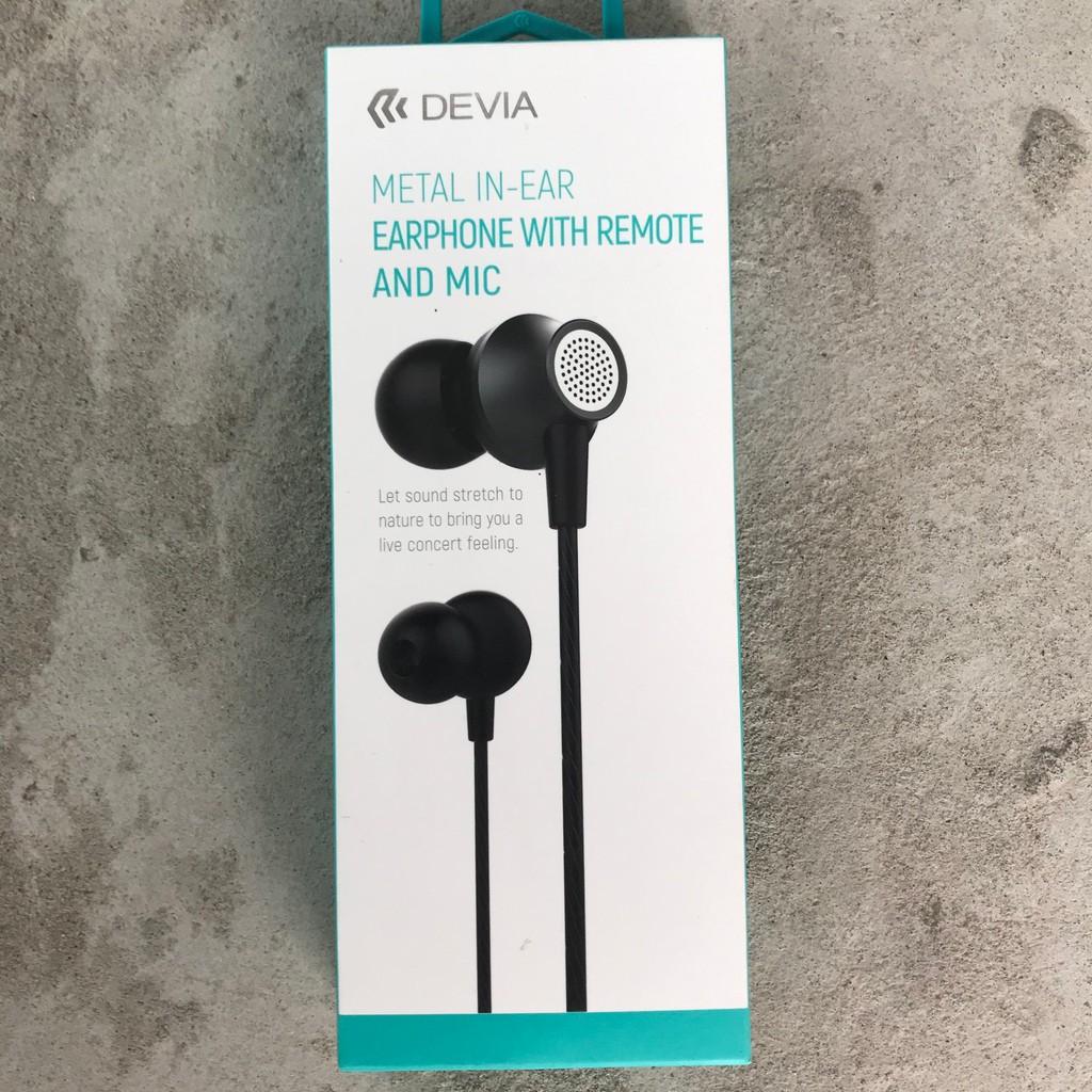 - Sản phẩm tai nghe Devia Metal In-ear là một trong những dòng sản phẩm tai nghe nhét tai của hãng Devia, là một trong những thương hiệu tai nghe nổi tiếng ở thị trường quốc tế. Tai nghe Devia Metal In-ear sở hữu chất lượng âm tốt cùng với việc tích hợp microphone và remote sẽ giúp người dùng thực hiện cuộc gọi dễ dàng hơn. Đây là một trong những sản phẩm được người dùng đánh giá cao về sự thoải mái khi đeo sử dụng.