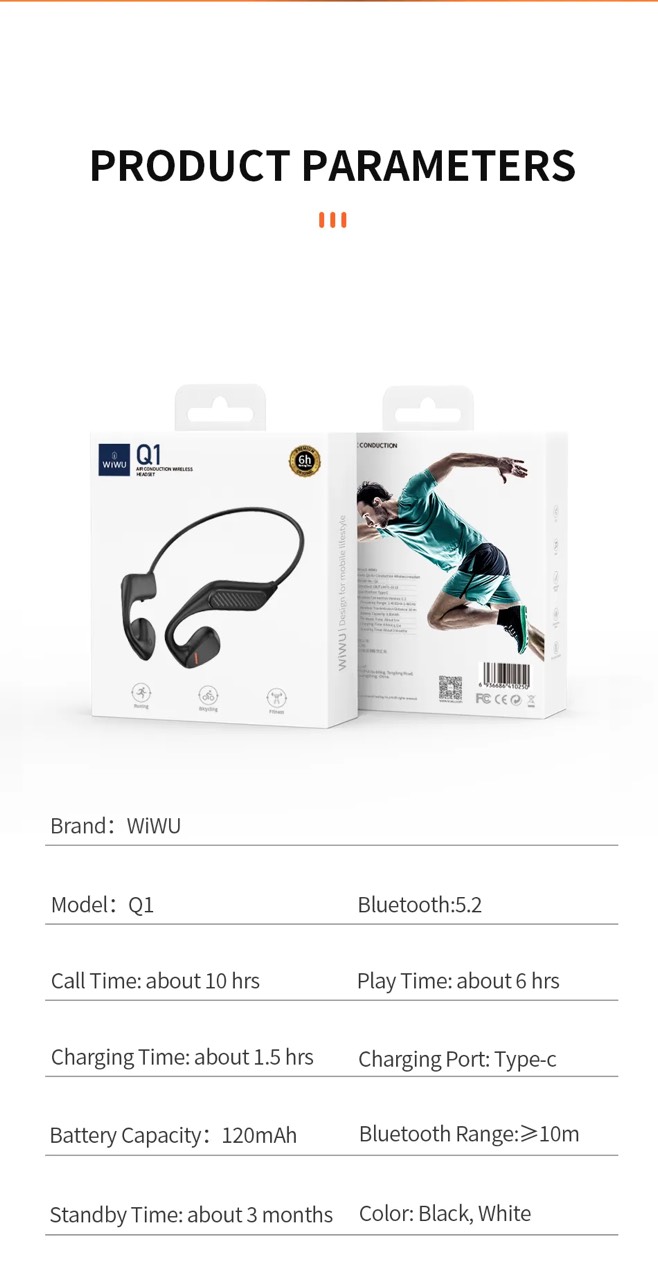 ✨Tai nghe Wiwu Q1 Air Conduction Wireless Headset dành cho các thiết bị có bluetooth, pin tuổi thọ cao, chống nước và nhẹ - Hàng chính hãng