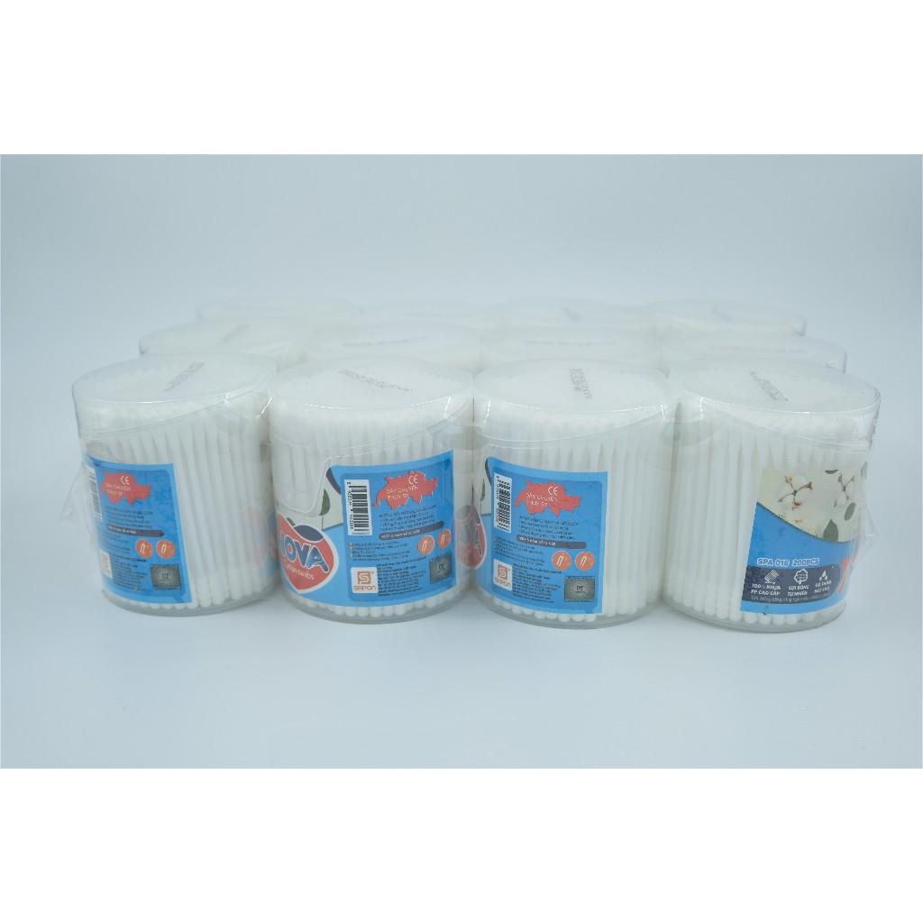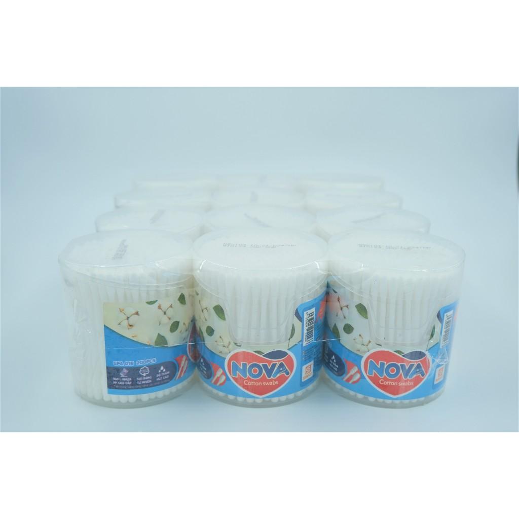✨Tăm Bông Vệ Sinh NOVA Hộp Vát Size L – Combo 12 Hộp x 200 Que (TB01-016), Đầu Bông Mịn, Hộp Chắc Chắn, Không Rụng Sợi