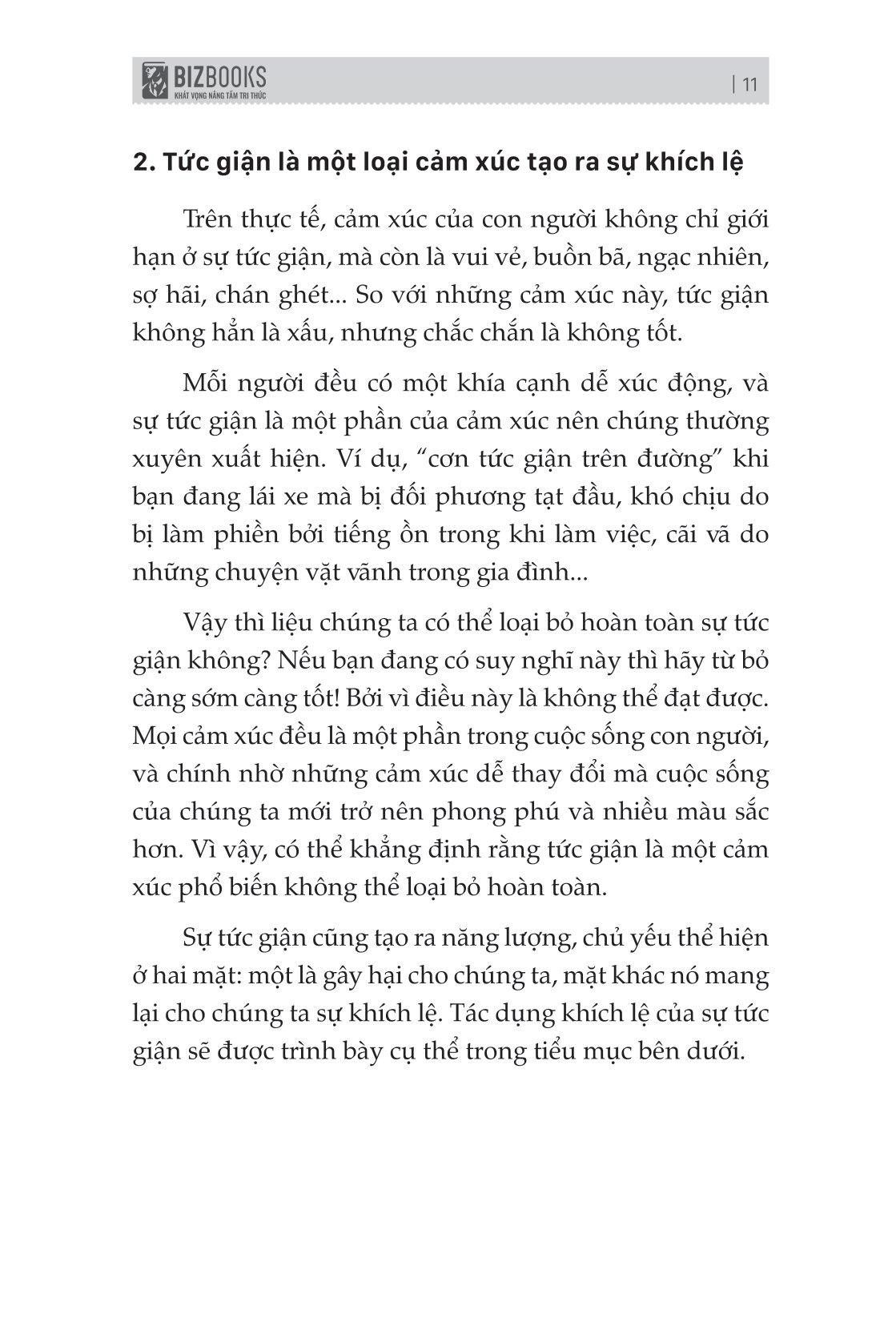 Nhà lãnh đạo quân sự nổi tiếng Napoleon từng nói: "Một người có thể kiểm soát cảm xúc của m.ình còn vĩ đại hơn một vị tướng có thể đánh hạ một thành trì." Khi ta tức giận thì sẽ luôn có "lửa vô minh" bừng cháy trong lòng. Khi con người khởi tâm "sân si" tức là đã thua rồi, loại người không thể làm chủ được cảm xúc sẽ vĩnh viễn không thể làm chủ được cuộc đời của họ, dẫn đến đánh mất đi lí trí, ngày càng trầm luân. Cuốn sách Tâm lý học về khắc chế cơn giận - Đừng để cơn giận thay đổi con người bạn chính là chìa khoá giúp bạn quản trị cảm xúc của chính m.ình.