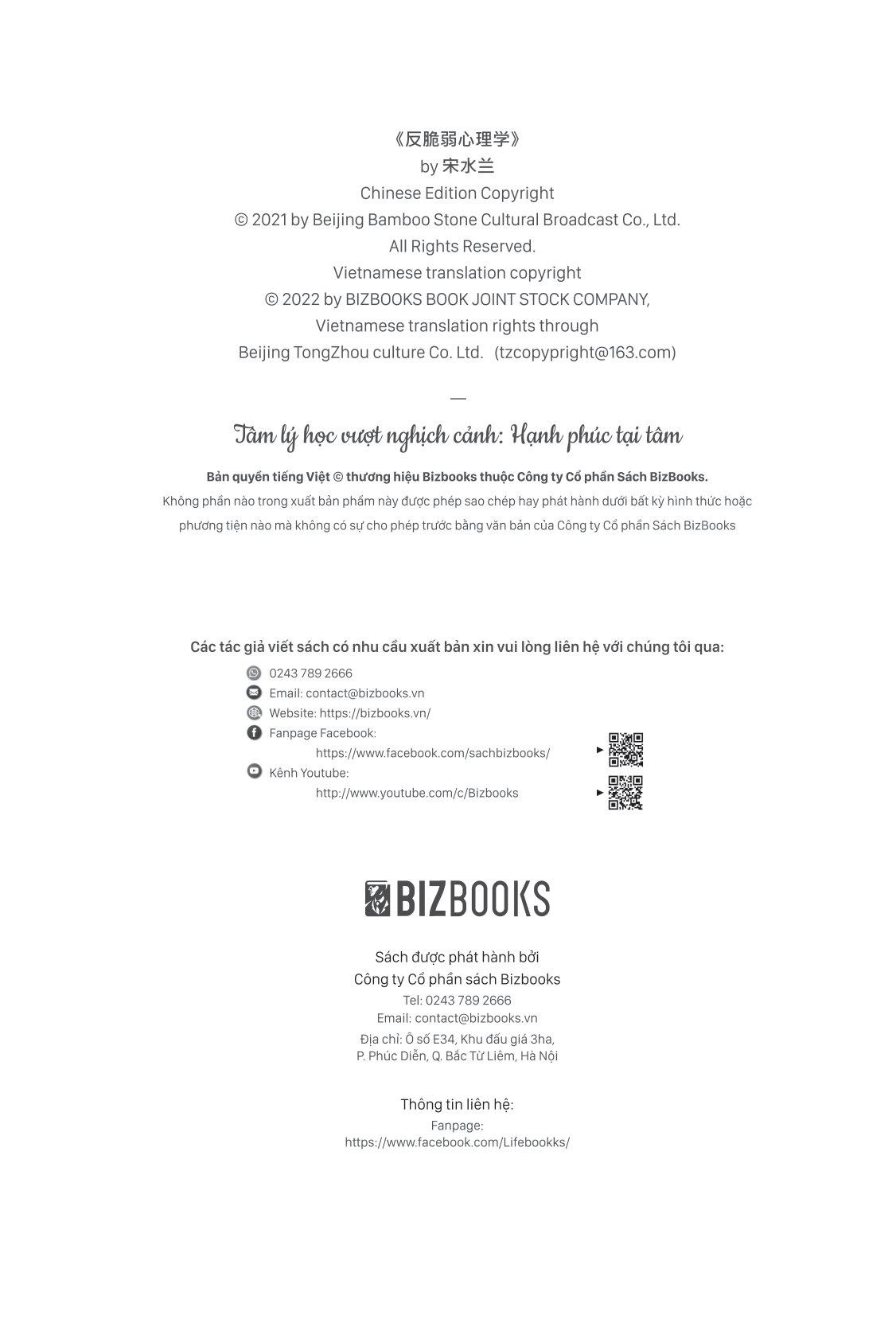 Con người ở độ tuổi nào thì nội tâm vẫn luôn có một phần yếu đuối, chỉ là mức độ và cách thể hiện khác nhau mà thôi. Và cuốn sách Tâm lý học vượt nghịch cảnh - Hạnh phúc tại tâm sẽ giúp bạn biết cách đối mặt với những phần yếu đuối ẩn sâu bên trong, trui rèn bản thân có bản lĩnh thực thụ để làm chủ cuộc sống của mình.