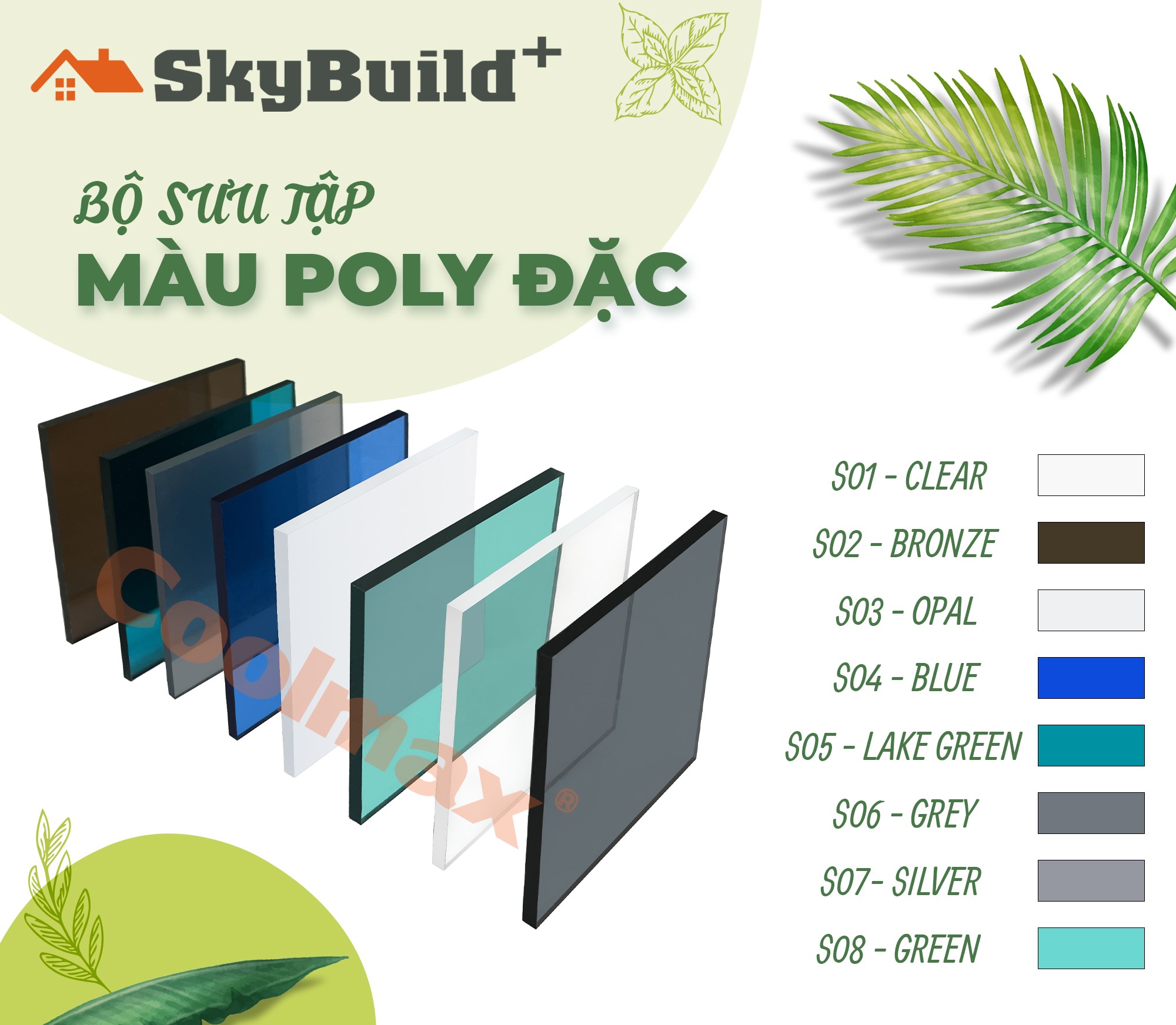 TẤM LẤY SÁNG DẠNG ĐẶC, THƯƠNG HIỆU COOLMAX - Dòng cao cấp, sử dụng 100% hạt nhựa nguyên sinh Bayer hoặc Sabic, phủ UV ngăn tia cực tím. - Bảo hành 7-10 năm. - Ưu