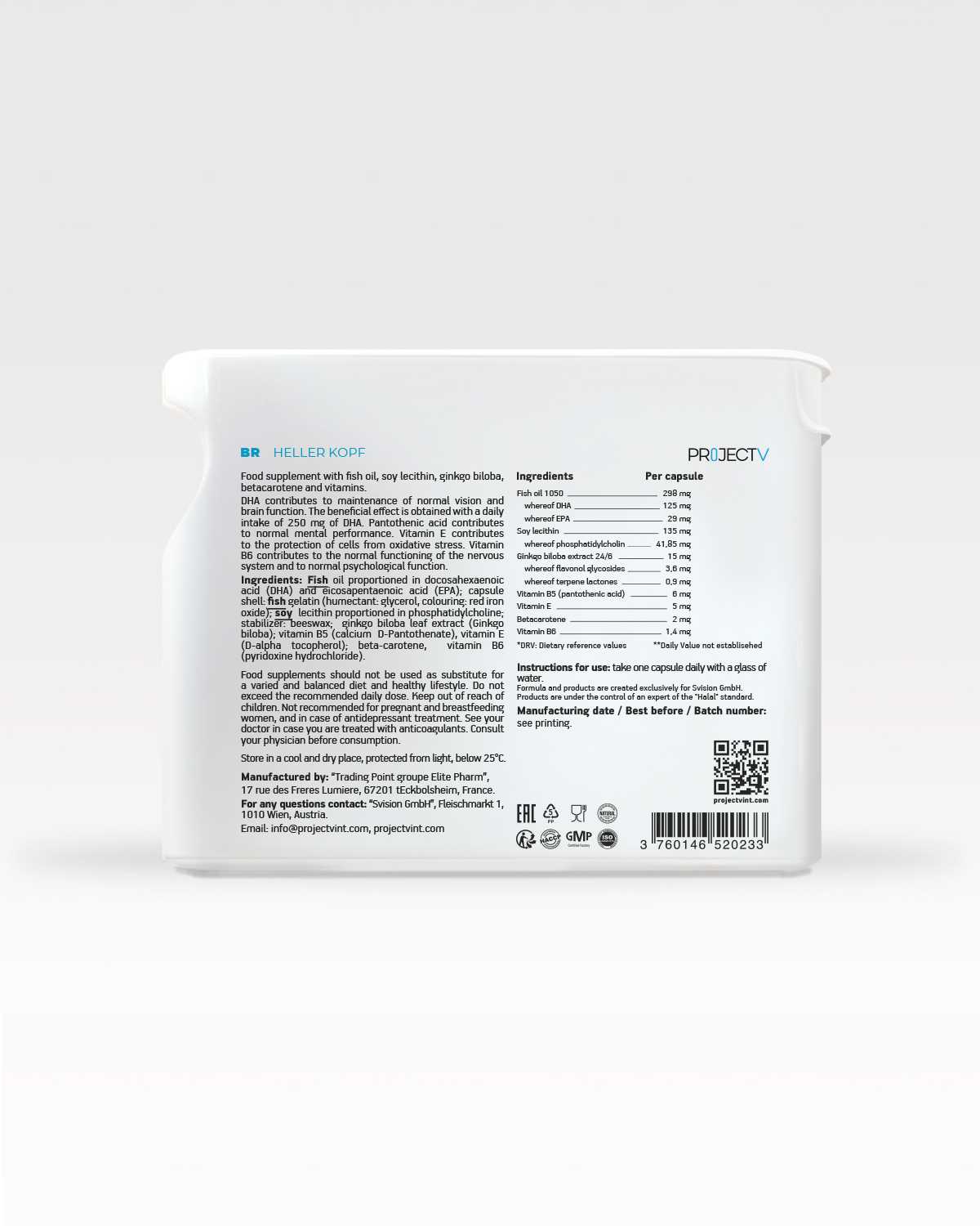 Bộ sản phẩm BROS được đề xuất như một thực phẩm bổ sung có hoạt tính sinh học như một nguồn bổ sung Axit Docosahexaenoic, Ginkgo Biloba, một nguồn Canxi, Kẽm, cũng như các Vitamin D, B, E và K.