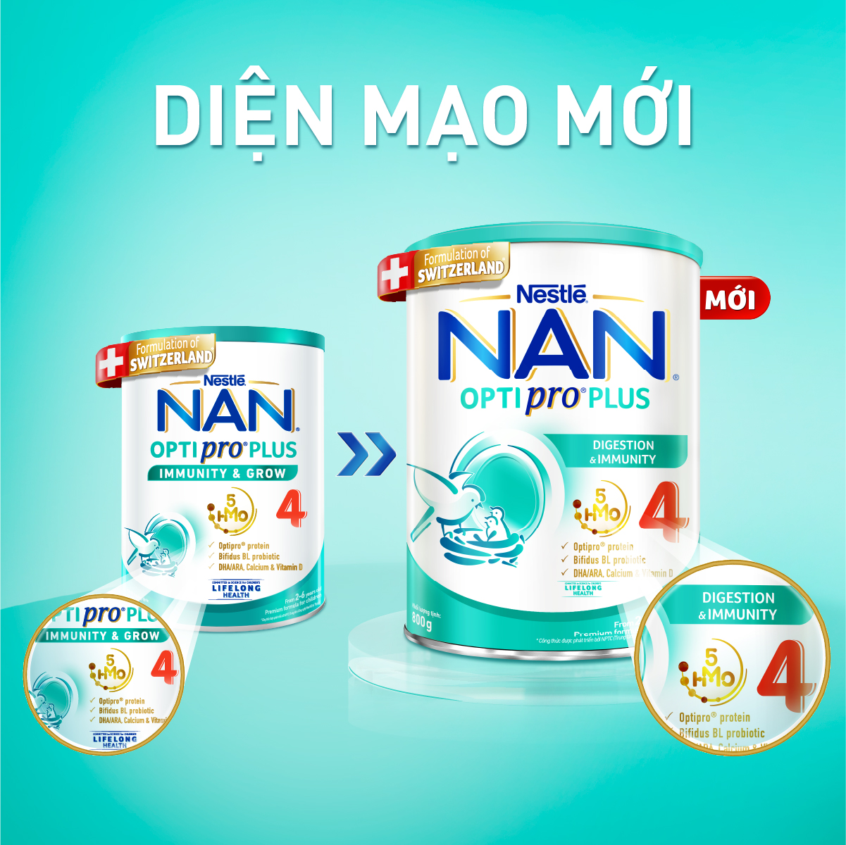 Mua tại TiktokGiới thiệu Thấu hiểu tâm lý của mẹ luôn muốn kiếm tìm những sản phẩm tốt nhất cho con, với kinh nghiệm 155 năm trong phát triển dưỡng nhi, Nestlé cho ra đời dòng sản phẩm sữa mát Thụy Sĩ NAN OPTIPRO PLUS 4 giúp tiêu hóa tốt, từ đó tăng cường đề kháng nhờ: phức hợp 5HMO, 100 triệu lợi khuẩn Bifidus BL, đạm chất lượng Optipro, DHA/ARA, Canxi & Vitamin D. Sản phẩm với công thức mới đột phá từ Thuỵ Sĩ, nhập khẩu chính hãng bởi Nestlé Việt Nam được kiểm tra nghiêm ngặt về chất lượng và an toàn sản phẩm của Nestlé toàn cầu. Đặc điểm nổi bật