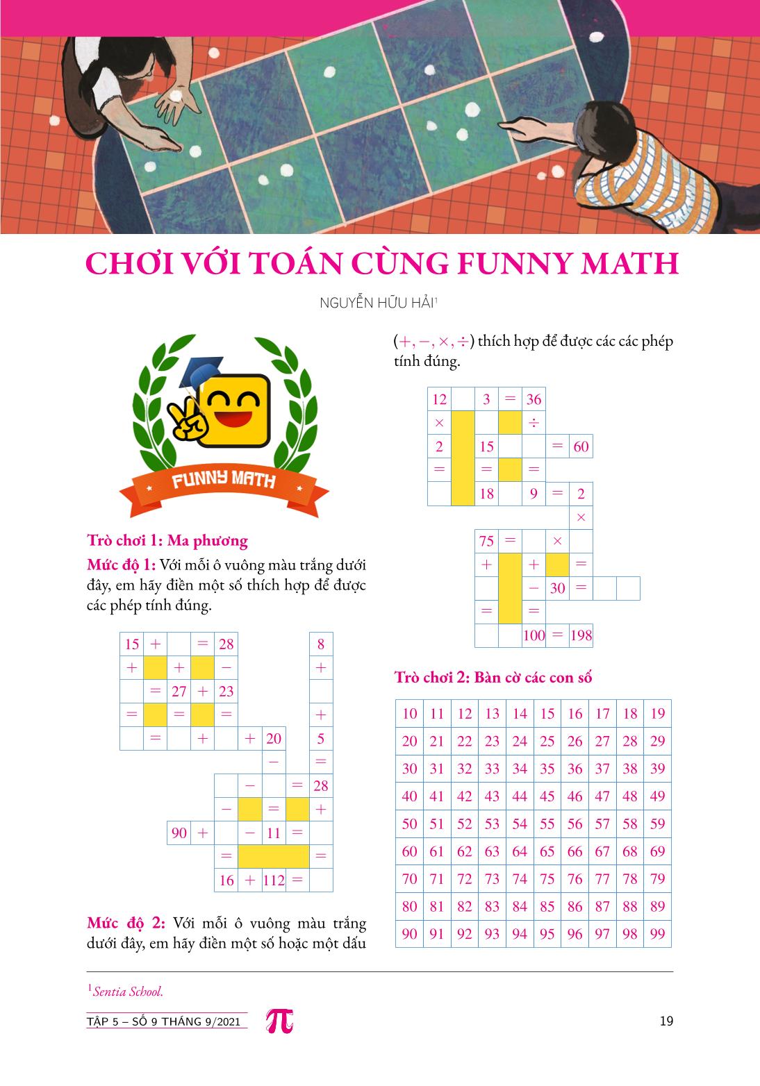 Chúng tôi hy vọng rằng mỗi độc giả, từ trẻ em tới người lớn tuổi, với các kiến thức vềToán học khác nhau, đều tìm được những điều lý thú về Toán học, những ích lợi của nó, qua các trang phù hợp trong Pi.