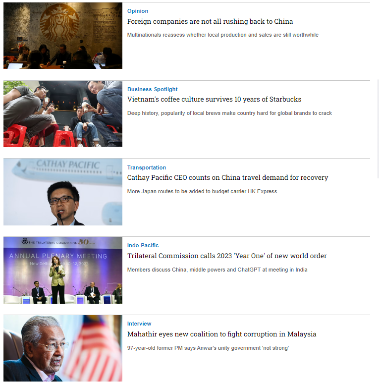 Nikkei Asia là tạp chí bằng tiếng Anh rất uy tín của Nikkei - Nhật Bản, chuyên viết về Xu hướng khu vực châu Á - Thái Bình Dương, Kinh tế, Công nghệ, Chính trị,