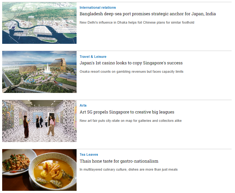 • Là thương hiệu truyền thông lớn và được kiểm duyệt nội dung hằng tuần với dạng thông tin chính thống, được thu thập từ các phóng viên uy tín trên toàn Châu Á, là nguồn trích xuất cho nhiều nhà báo tại Việt Nam.
