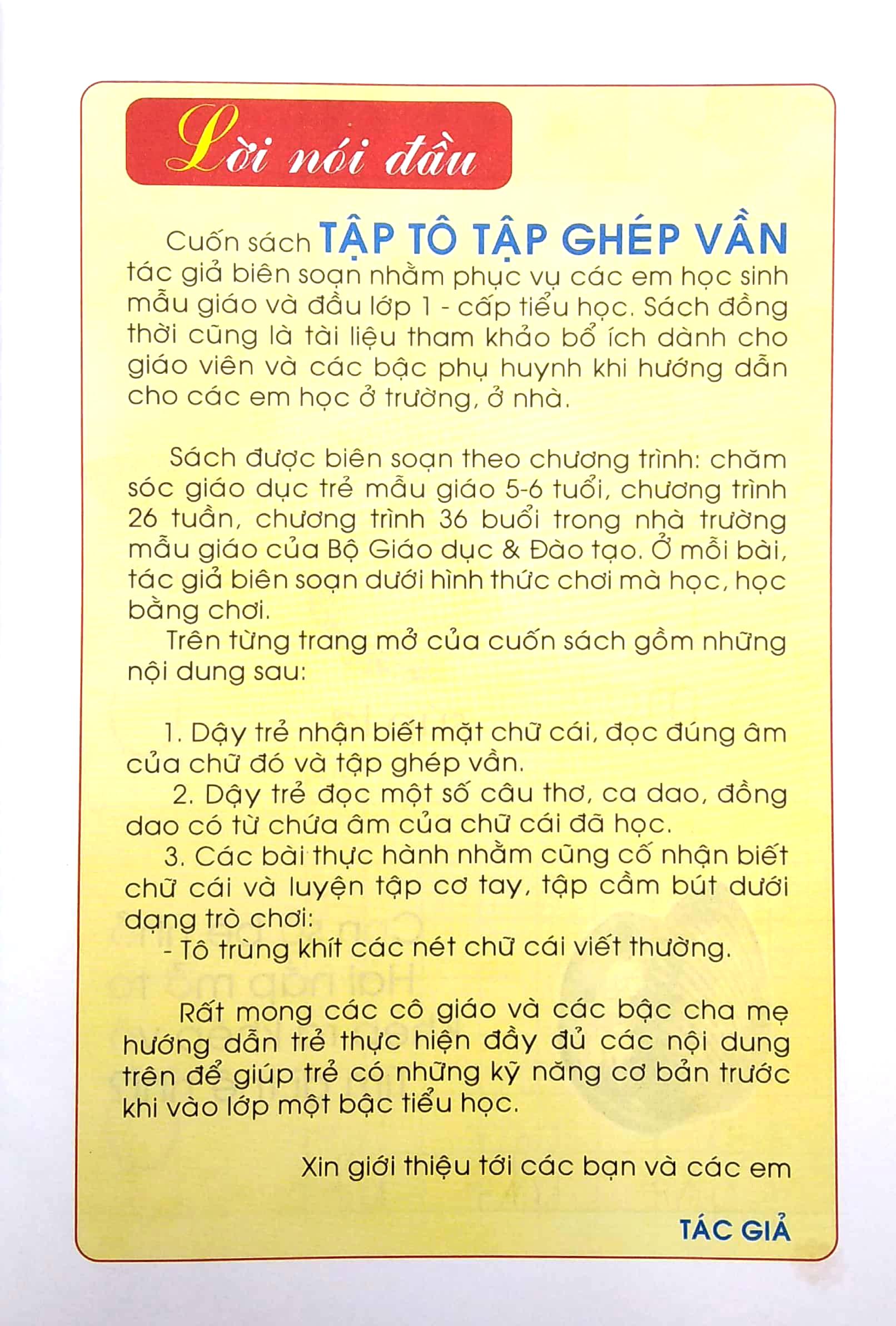Tập Tô - Tập Ghép Vần - Tập 2 Để chuẩn bị cho các bé mẫu giáo vào lớp 1 thì việc làm quen với ghép vần là vô cùng quan trọng và cần thiết.