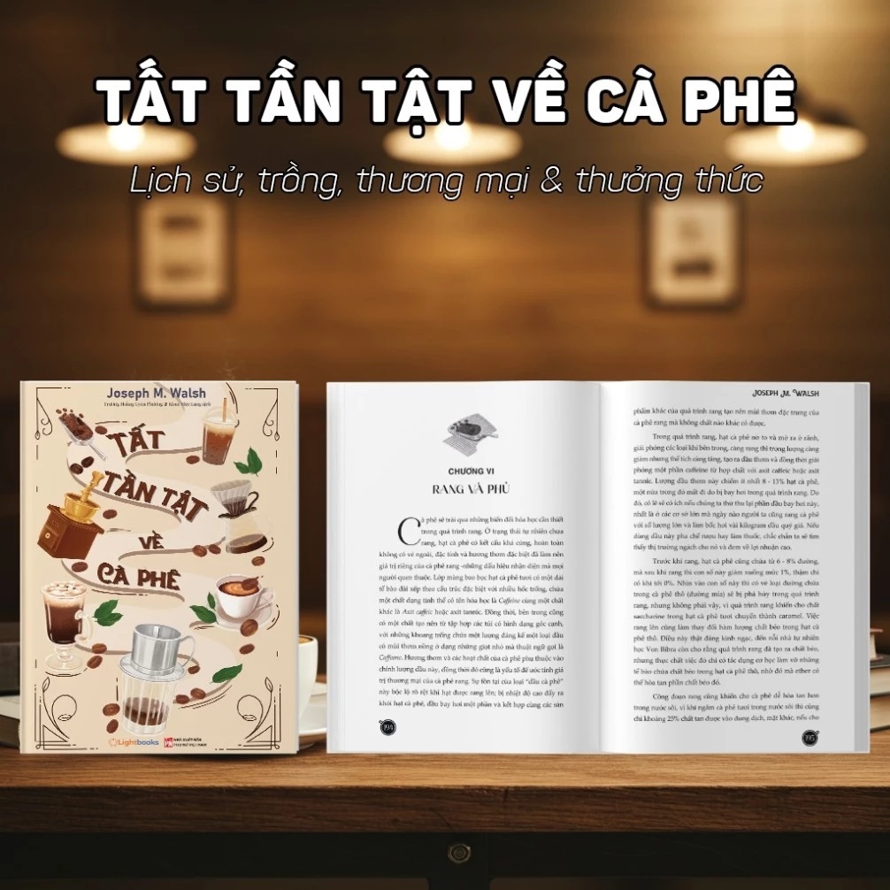 Từ những hạt nhỏ bé, mang trong mình hương vị quyến rũ và năng lượng diệu kỳ, cà phê đã chinh phục cả thế giới, trở thành một phần không thể thiếu trong đời sống văn hóa, kinh tế và cả những khoảnh khắc suy tư của con người. Để khám phá trọn vẹn thế giới phong phú và phức tạp ấy, cuốn sách "Tất tần tật về cà phê" vừa được Nhà xuất bản Phụ nữ Việt Nam phối hợp cùng Công ty cổ phần Sách Lightbooks ra mắt độc giả vào năm 2024, chính là một cẩm nang toàn diện và vô cùng giá trị.