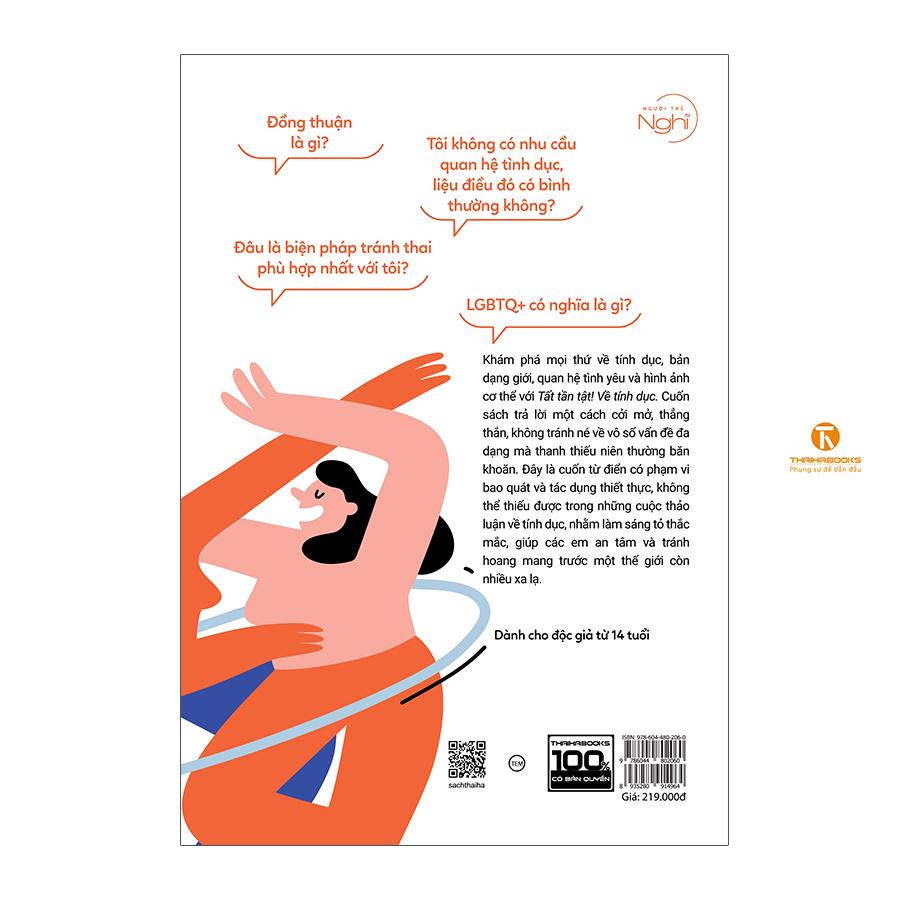“Tất tần tật! Về tính dục” cho phép bạn có thể tìm hiểu những thông tin mình cần mà không nhất thiết phải đọc cả cuốn sách từ A đến Z. Cuốn sách cũng không phải câu chuyện hay công thức nấu ăn mà tác giả cung cấp cho chúng ta, càng không phải những bài phát biểu đầy tính giáo điều mà ai đó áp đặt lên độc giả. Ngược lại, nó đem lại những gợi ý về cách nghĩ, những thông tin ngắn gọn, những công cụ và những ví dụ để người đọc có thể phát triển khả năng tư duy phản biện. Đồng thời khuyến khích các bạn đặt câu hỏi, tham gia vào cuộc đối thoại, trải nghiệm và vui vẻ tận hưởng những trải nghiệm ấy.