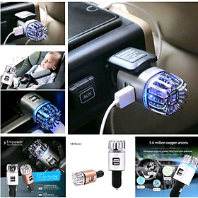 tẩu sạc áy lọc Không Khí Công Nghệ ion âm Twinkle birds USA hàng cao câp kèm 2 cổng sạc điện thoai thông minh tự ngắt khi đầy siêu tiện   Máy có đèn led
