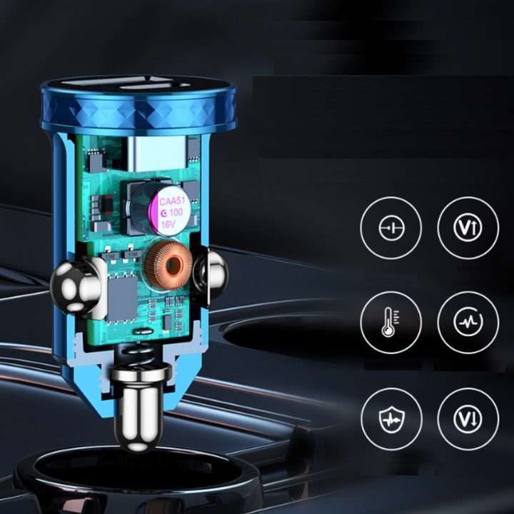 Đặc điểm kỹ thuật: USB * 1, Type-c * 1Kích thước: 43mm * 25,5mmChức năng: sạc nhanh pd + QC 3.0Đầu vào: DC12V-24VĐầu ra: USB-C 5V / 3A 9V / 2.2APD: 20WUSB 2: 5V /