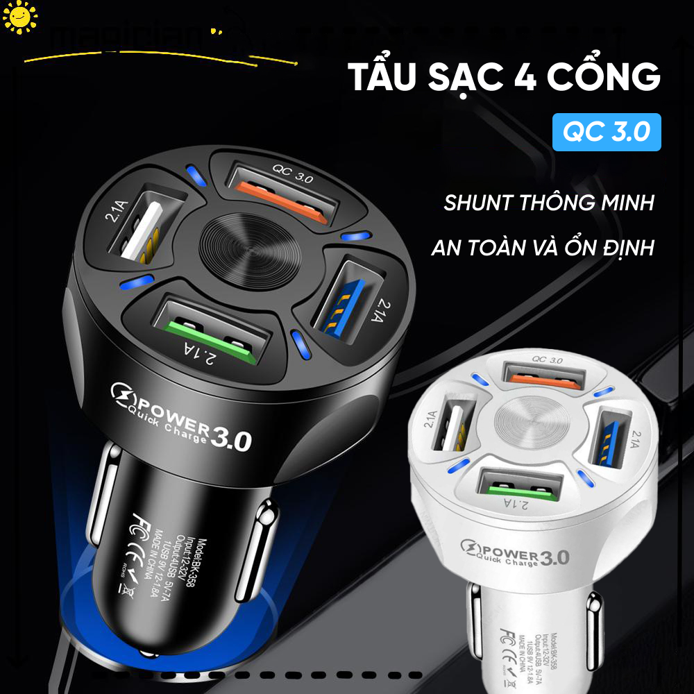 Tẩu Sạc Xe Ô Tô 4 Cổng USB Công Nghệ Sạc Nhanh QC 3.0A THÔNG TIN SẢN PHẨM: - Chất liệu: ABS - Các tính năng: Ổn định điện áp, Cắm và chạy, Chống