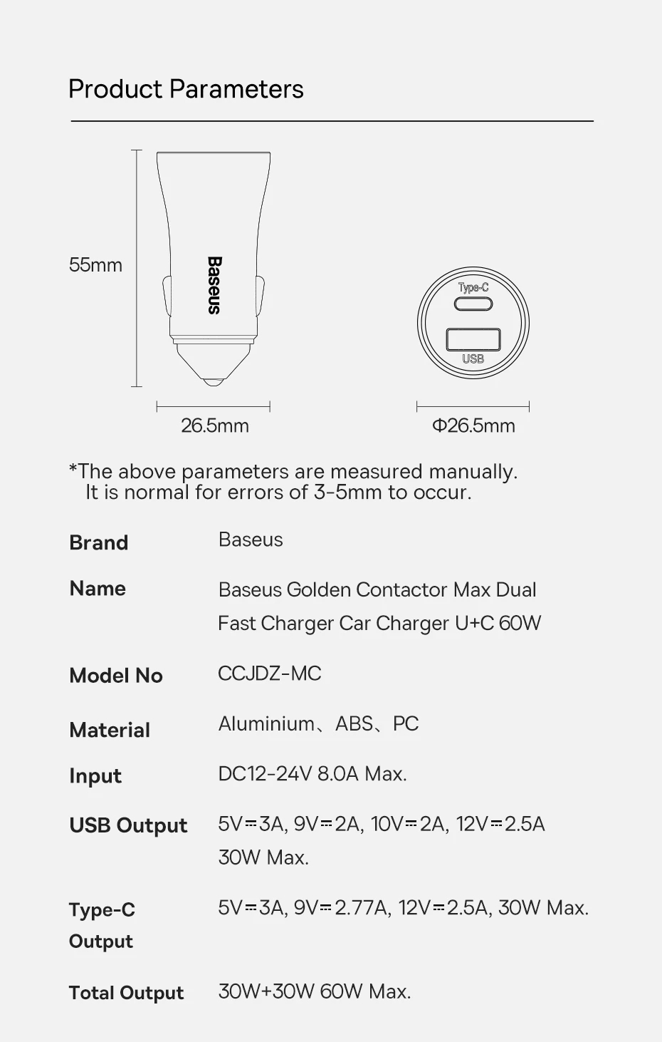 Mua tại TiktokTHÔNG TIN SẢN PHẨM Tính Năng Tẩu Sạc Ô Tô Ba-se-us Golden Contactor Max Dual Fast Charger Car Charger 60W