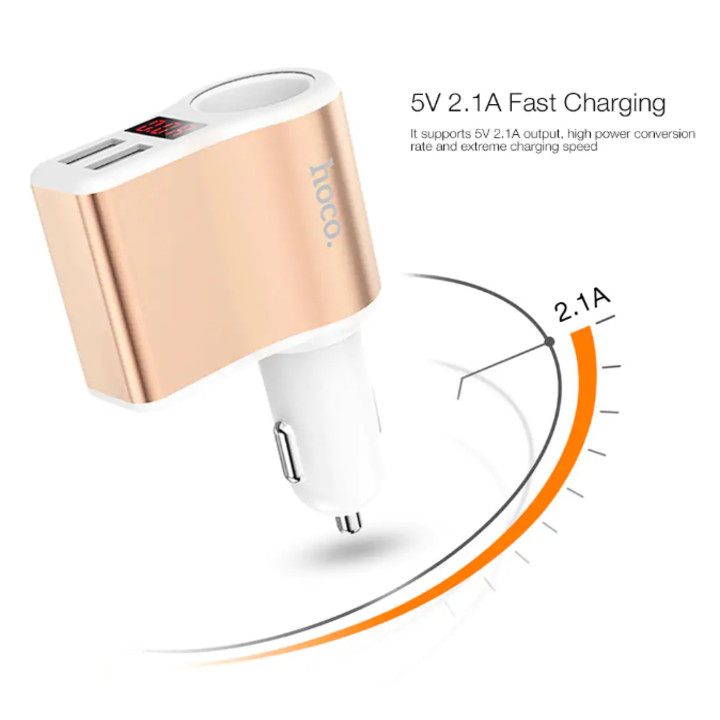 - Đây là một sản phẩm đa năng nên bạn sẽ thấy nó sẽ có rất nhiều công dụng, sạc Hoco có 2 cổng USB (5V 2.1A), nên bạn có thể sạc 2 thiết bị cùng một lúc, 1 lỗ để bạn có thể cắm thêm một cốc sạc xe hơi, và một màn hình led để hiện thị các thông số điện áp để từ đó có thể lưạ chọn các sợi dây cáp sao cho phù hợp với thiết bị của mình nhất.