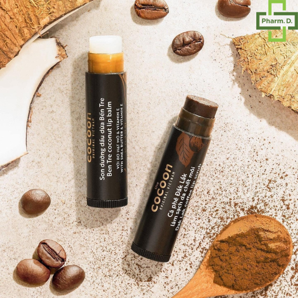 Combo son tẩy da chết môi Cà phê đắk lắk cocoon5g+son dưỡng môi dầu dừa bến tre cocoon5g