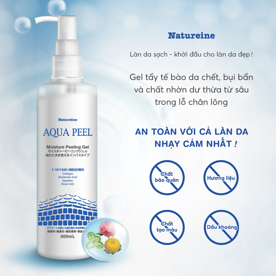 - Gel tẩy da chết Natureine Aqua Peel là tẩy da chết dạng gel với cơ chế làm sạch kép: