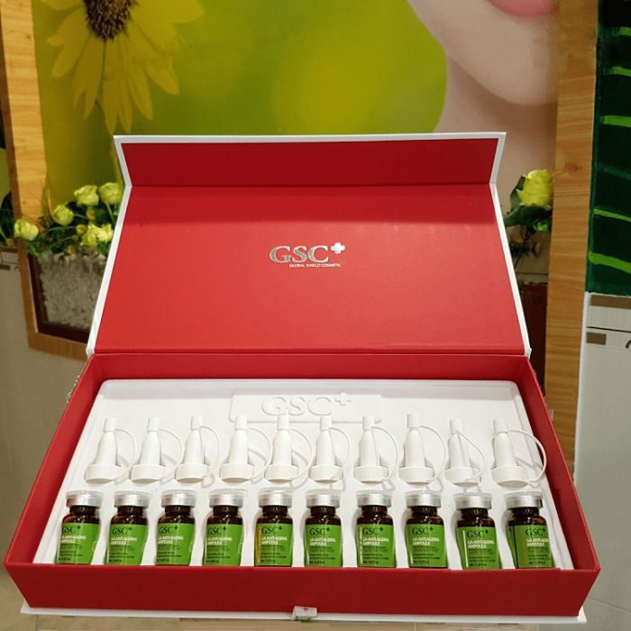 Đây là một loại “Thuốc bổ cho da” dưới dạng tinh chất, được áp dụng công nghệ tế bào gốc, thảo dược từ thiên nhiên giúp hồi phục làn da bị hư tổn. Cải thiện các nếp nhăn cho làn da mệt mỏi và chống lão hóa hiệu quả, ngoài ra còn giúp duy trì cân bằng độ ẩm và lớp dầu trên da. Kết hợp công nghệ lăn kim và các khác để điều t rị sẹo rỗ, sẹo lõm, trẻ hóa, phục hồi da yếu, da mỏng, da ngay sau làm các phương pháp điều t rị rất hiệu quả. Tế bào gốc t rị sẹo GSC Tác dụng của tế bào gốc t rị sẹo rỗ, lỗ chân lông to, trẻ hoá, phục hồi da GSC+