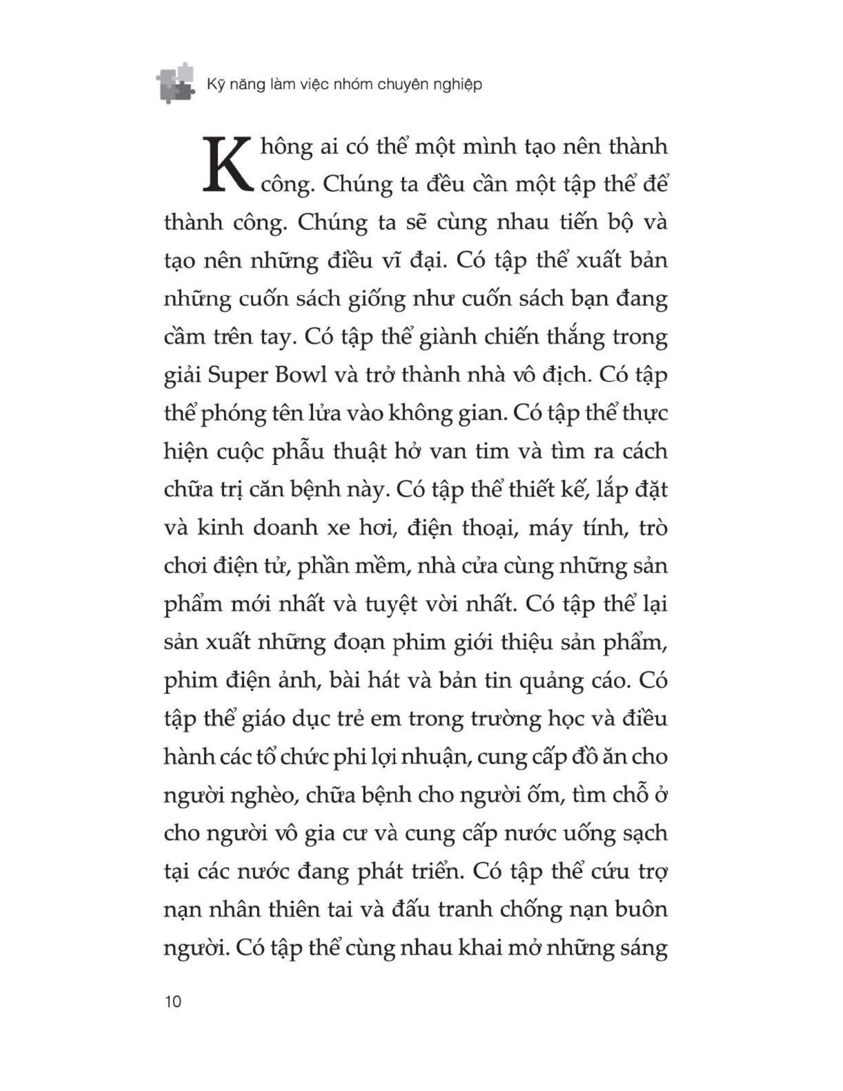 Bạn có thể tận dụng toàn bộ những nền tảng, lời gợi ý và các câu chuyện trong cuốn sách Teamwork – Kỹ năng làm việc nhóm chuyên nghiệp để khiến bản thân trở nên tuyệt vời và biến nhóm của m.ình trở thành một tập thể vĩ đại.