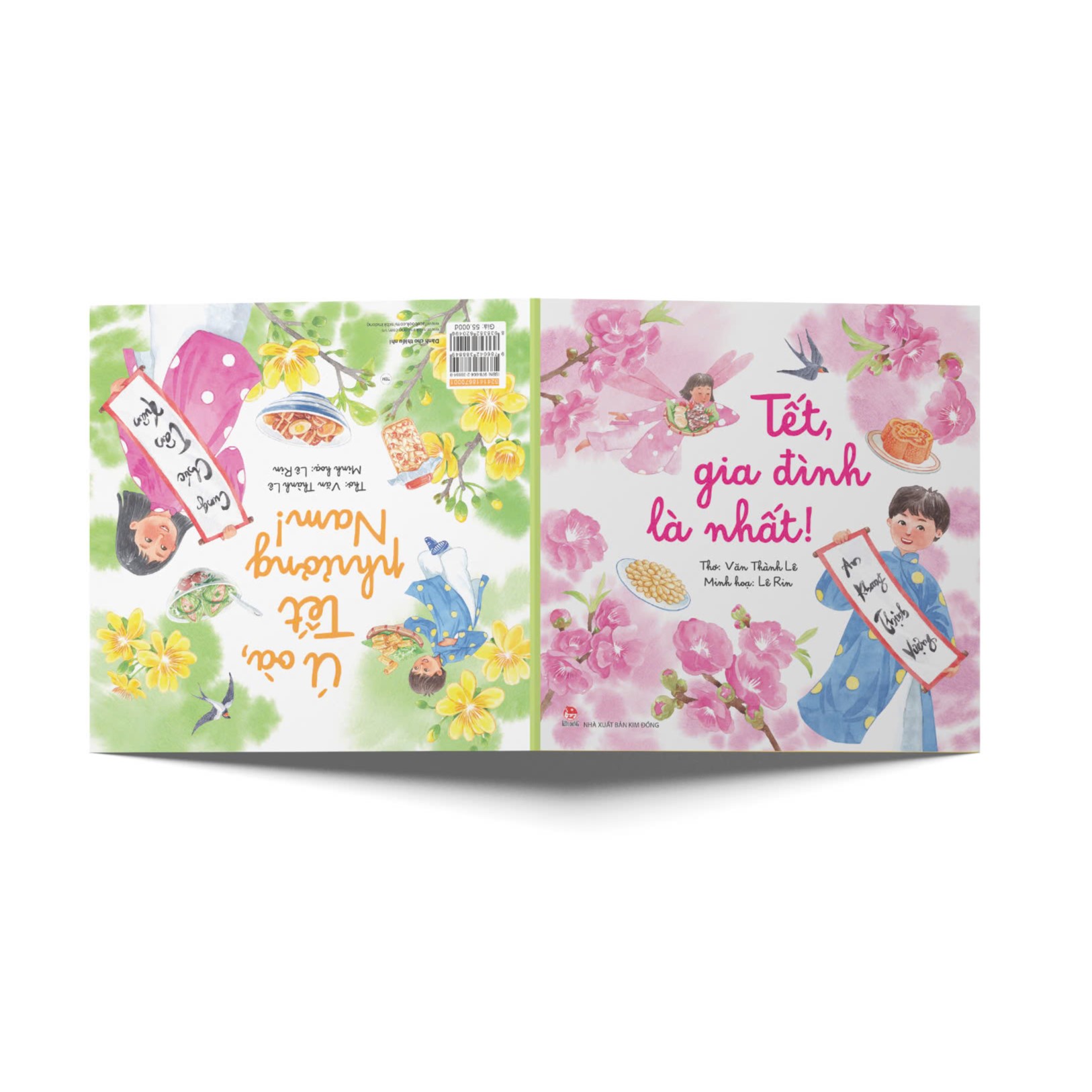 Cuốn thơ Tết đặc biệt này gồm hai bài thơ được in hai mặt sách (đọc ngược, đọc xuôi sách đều được) với hai nhân vật cùng khám phá những nét đẹp của ngày Tết quê hương. Những vần thơ trong trẻo của tác giả Văn Thành Lê được minh hoạ sinh động và rực rỡ qua phong cách vẽ màu nước đặc trưng của hoạ sĩ Lê Rin mang tới không khí Tết rạo rực, ấm cúng, trải dài khắp mọi miền quê. “Nơi nào Tết đi qua Là tiếng cười đọng lại Là mùa xuân gõ cửa E ấp những ban mai. Ú oà, xin chào Tết! Nhanh lớn nào bạn ơi Bao miền đang vẫy gọi Chờ chúng mình đến chơi!”