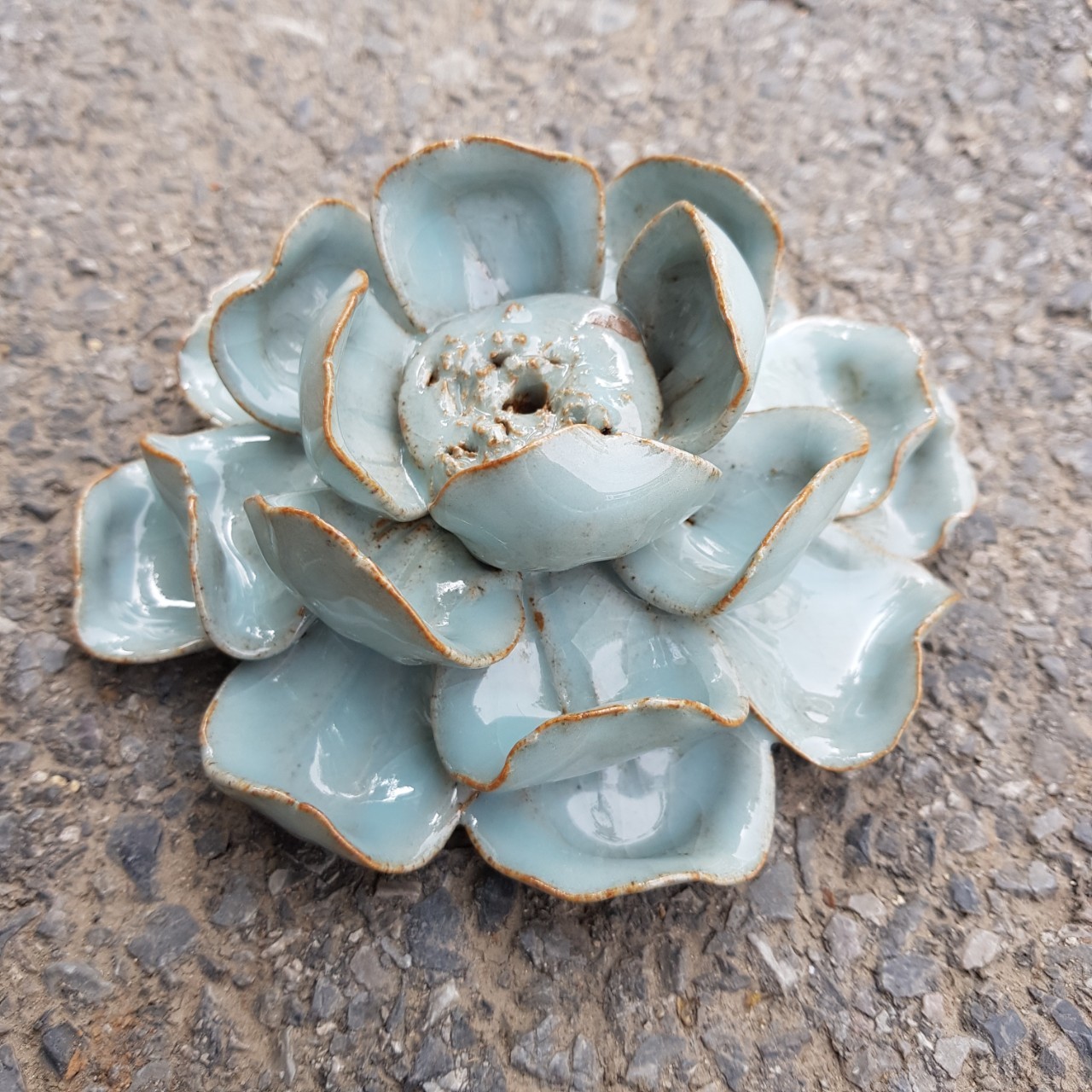 Hoa gốm nặn tay tinh tế Là sản phẩm tinh hoa của người thợ tài hoa lành nghề. Có thể dùng trang trí KT: Ngang 10cm, cao 4cm