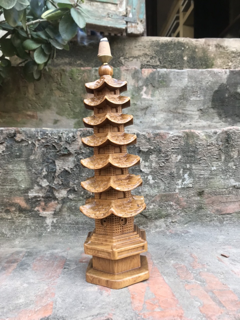 ✨Thác khói xông trầm bằng gỗ bách xanh thơm nức liền khối kt cao 30×9×9cm