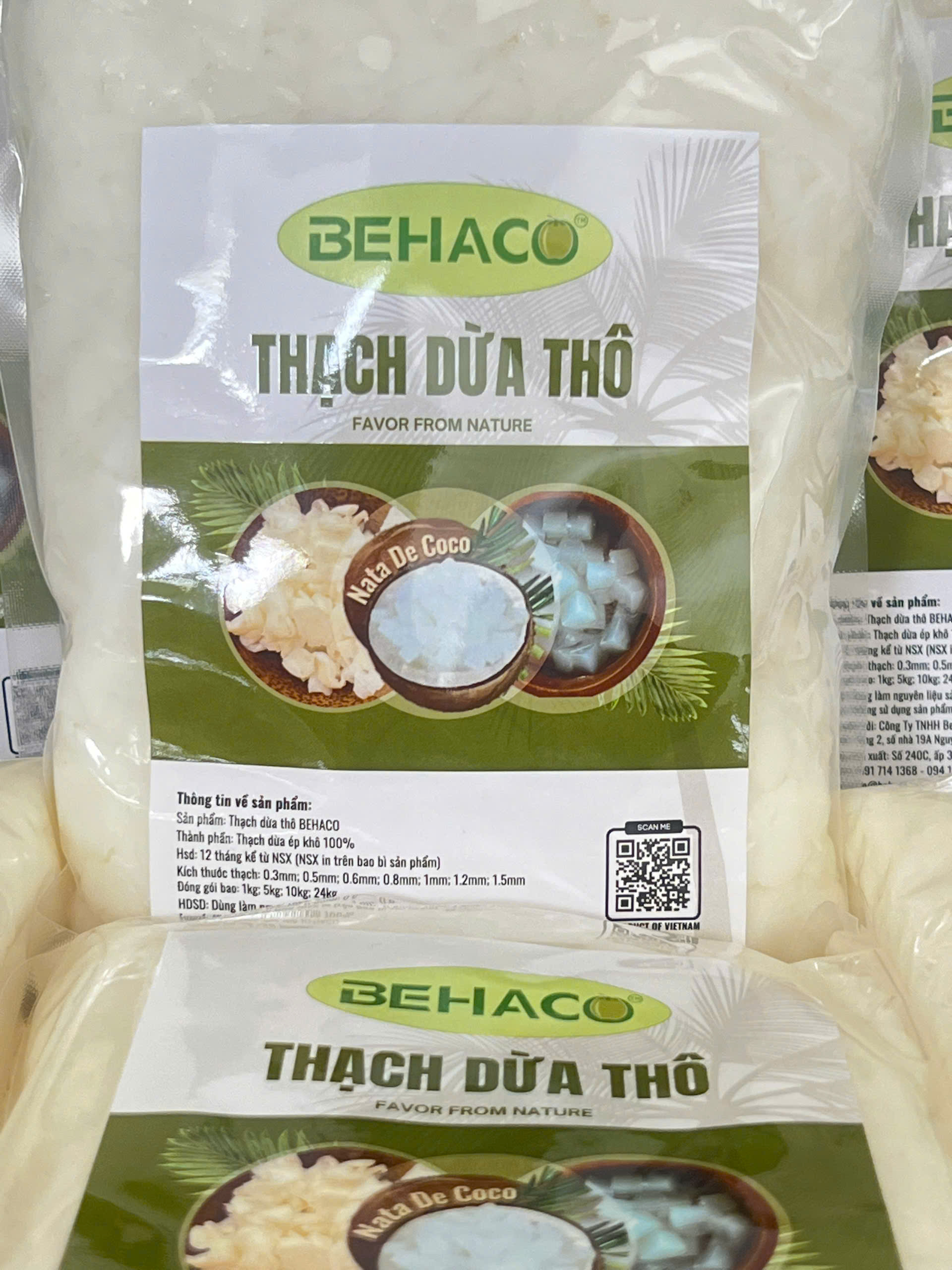 Mua tại TiktokTHẠCH DỪA ÉP KHÔ BEHACO - 12 LY Thạch dừa thô là lớp Hemicellulose, sản phẩm sinh khối đươc tạo thành bởi sự lên men của vi khuẩn Acetobacter xylinum trong môi trường nước dừa già bổ sung các chất dinh dưỡng cần thiết tốt cho sức khỏe. Thạch dừa thô được sản xuất tại Công Ty TNHH Behaco Bến Tre Việt Nam.