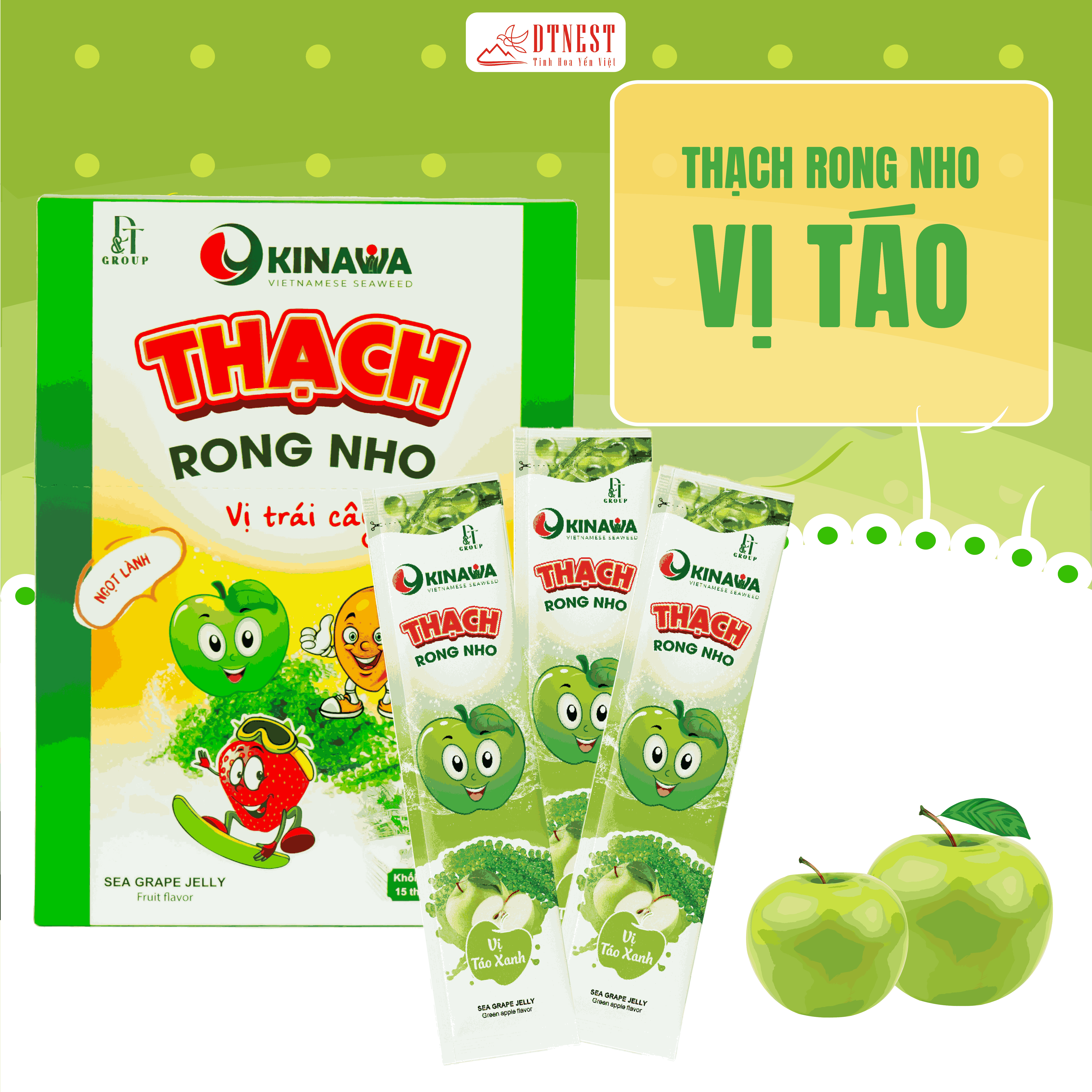THẠCH RONG NHO OKINAWA - CUNG CẤP NHIỀU DƯỠNG CHẤT CHO SỨC KHỎE Thạch rong nho là sự kết hợp hài hoà giữa rong nho và nước cốt trái cây, tạo nên một hương vị