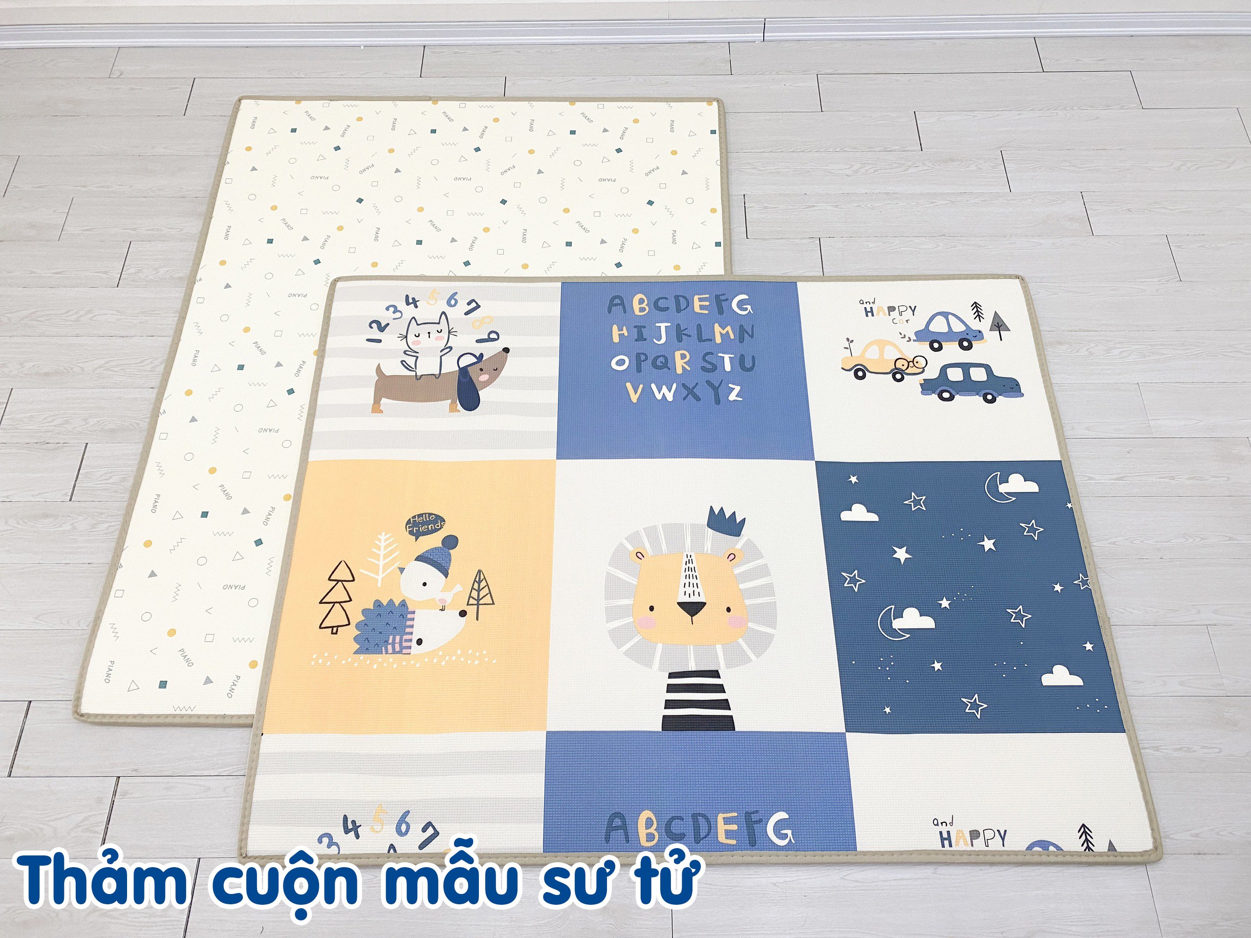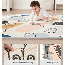 - Thảm XPE cao cấp không thấm nước, 2 mặt đều có thể dùng được và được in họa tiết sặc sỡ đáng yêu.