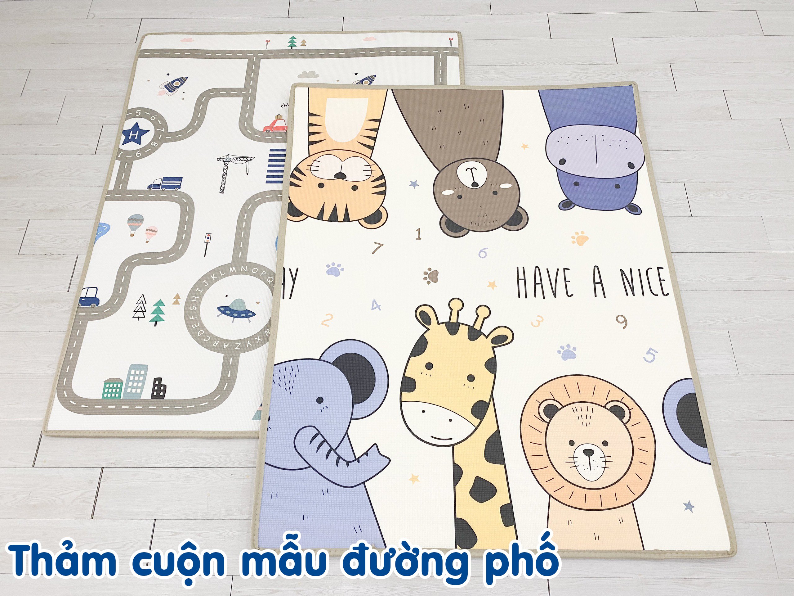 Thảm xốp cho bé dày 2cm, cuộn tròn dễ dàng không nhăn, tiết kiệm diện tích khi không sử dụng