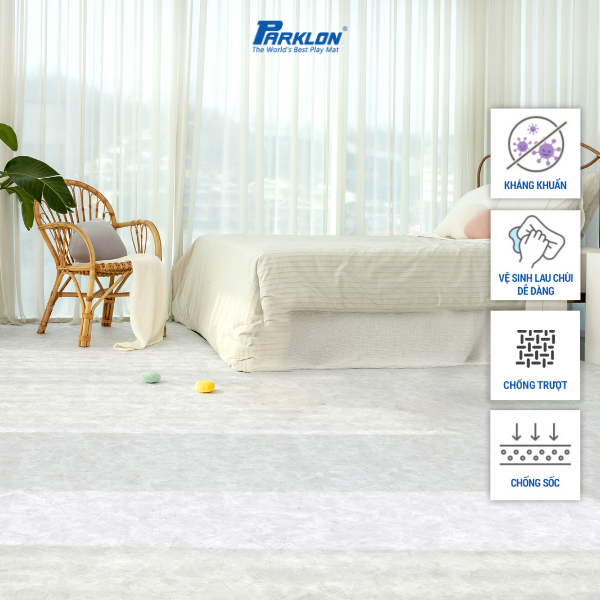 Thảm Trẻ Em Hàng Đầu Thế Giới Nhập Khẩu Chính Hãng Hàn Quốc Parklon Thương hiệu: Parklon Xuất xứ: Hàn Quốc Chất liệu: Nhựa PVC Họa tiết: Hoa Văn Vân Đá Hoa Cương Trắng