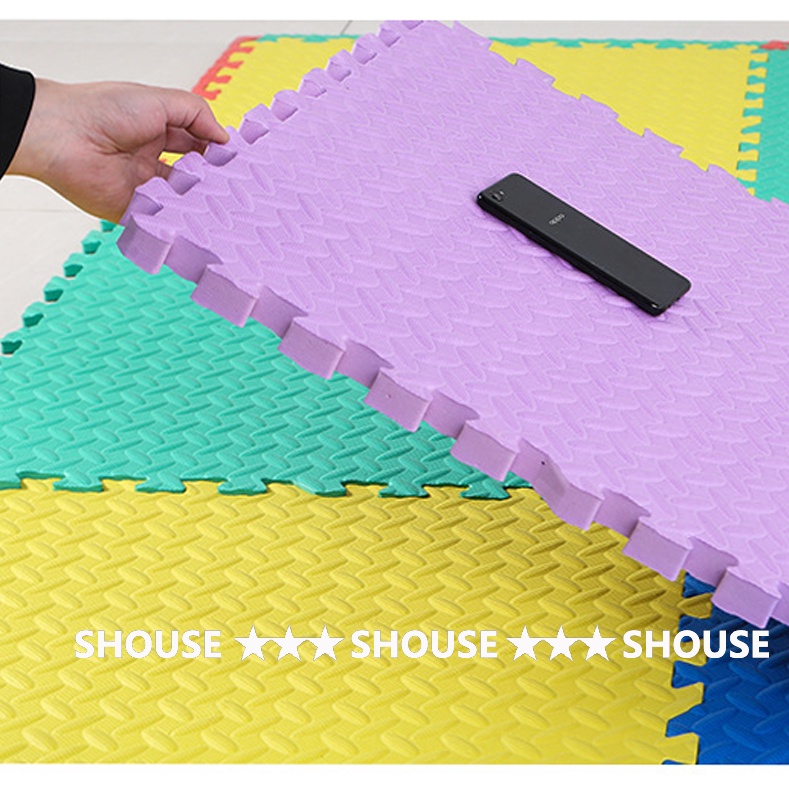 Thảm Nhật siêu bền Kích thước: 30cmx 30cm và 60cm x 60cm Dày: 1 cm Hàng Nhật chất lượng xốp cao, ko lẫn tạp chất nên hoàn toàn ko có mùi khó chịu như hàng Trung Quốc hoặc nội địa Việt Nam. Thảm đàn hồi tốt, rất êm và không thấm nước, dễ lau chùi, có thể cắt bằng dao kéo Bề mặt có vân chống trượt Phù hợp dùng quanh năm. Đặc biệt là trẻ nhỏ. 4 tấm tương ứng 1,44 mét vuông